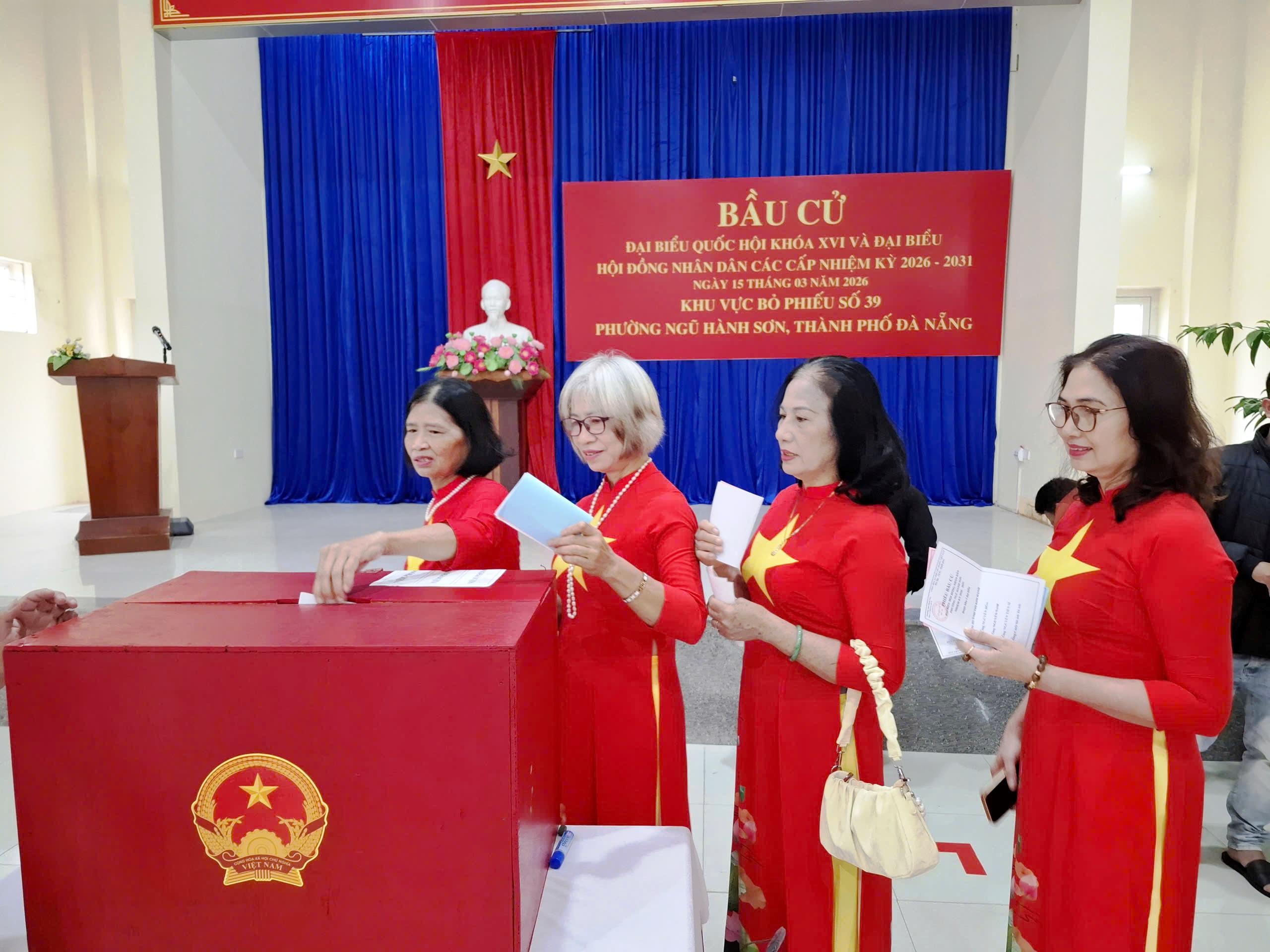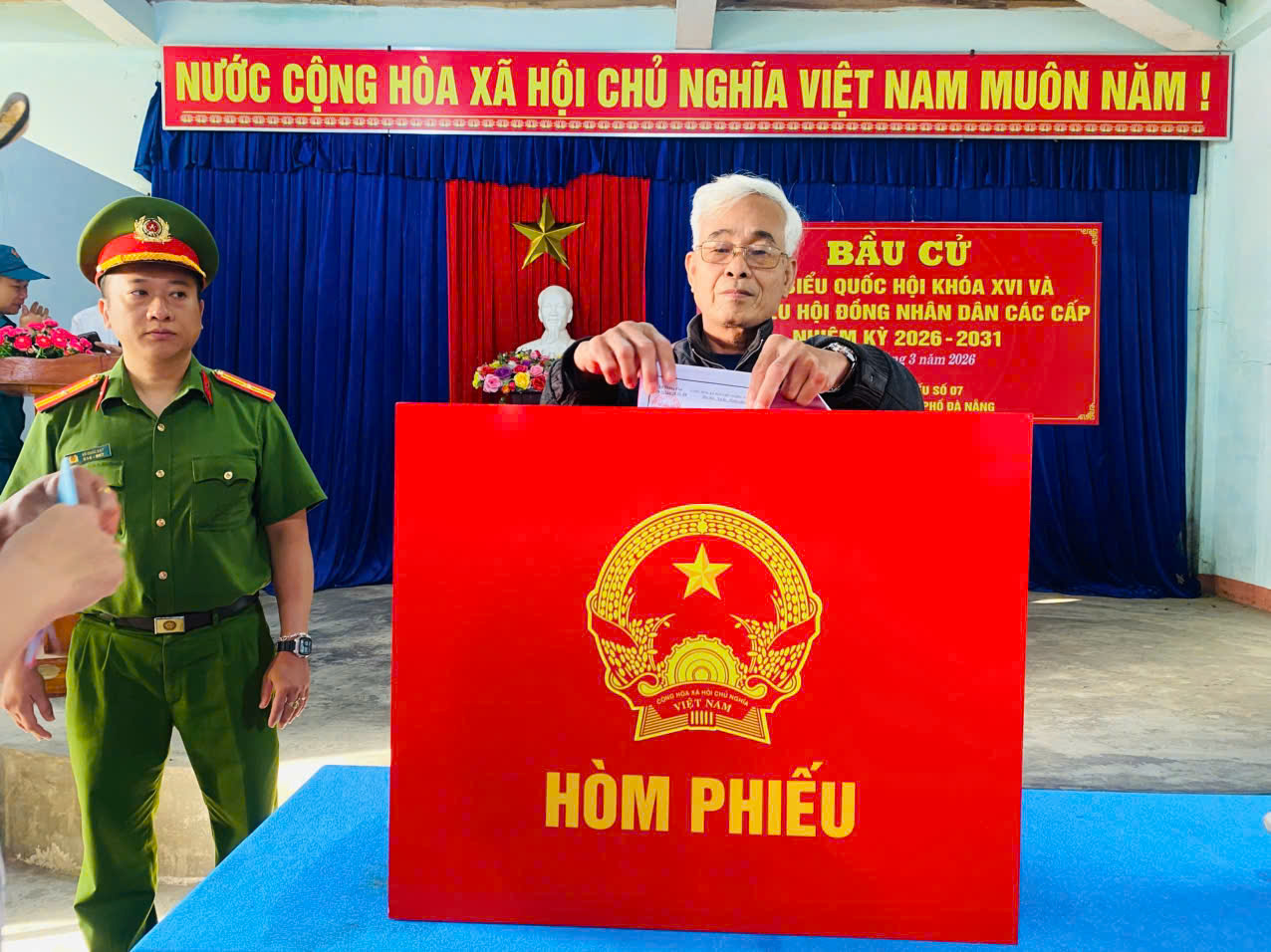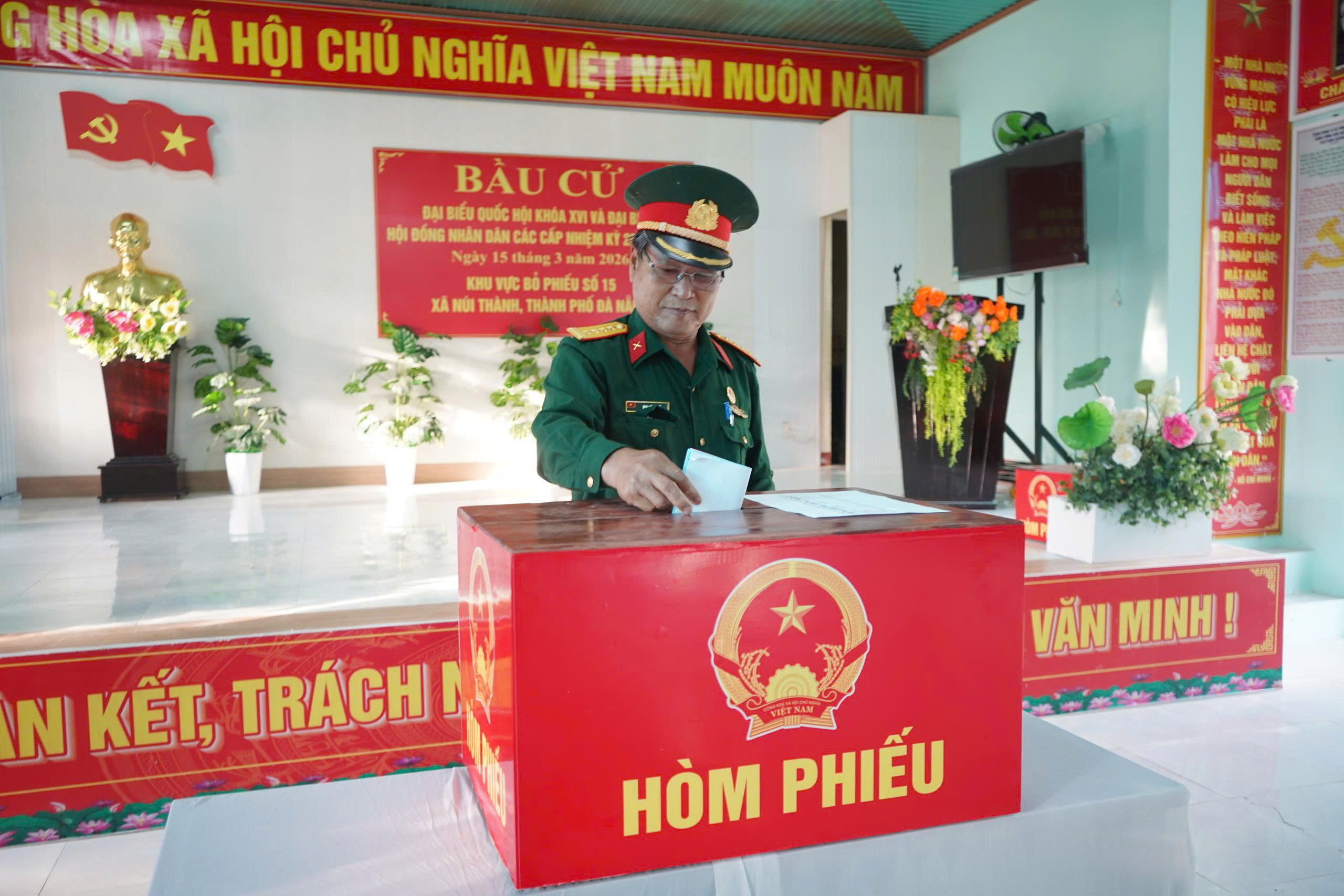 * Tại phường Ngũ Hành Sơn, sáng 15-3, cử tri thể hiện tinh thần trách nhiệm cao, thực hiện quyền và nghĩa vụ công dân, nô nức đi bầu cử đại biểu Quốc hội khóa XVI và đại biểu Hội đồng nhân dân các cấp nhiệm kỳ 2026 - 2031.