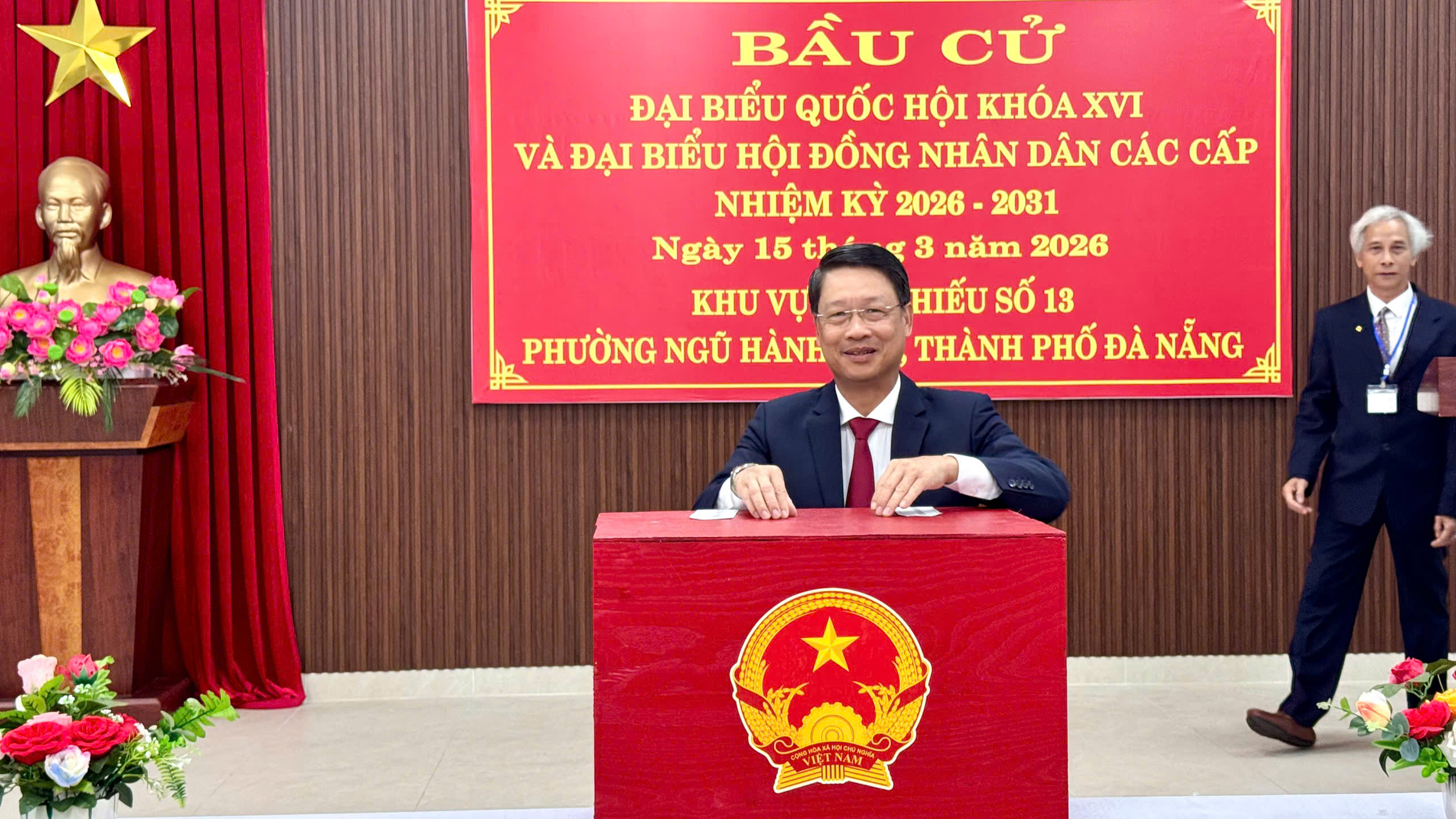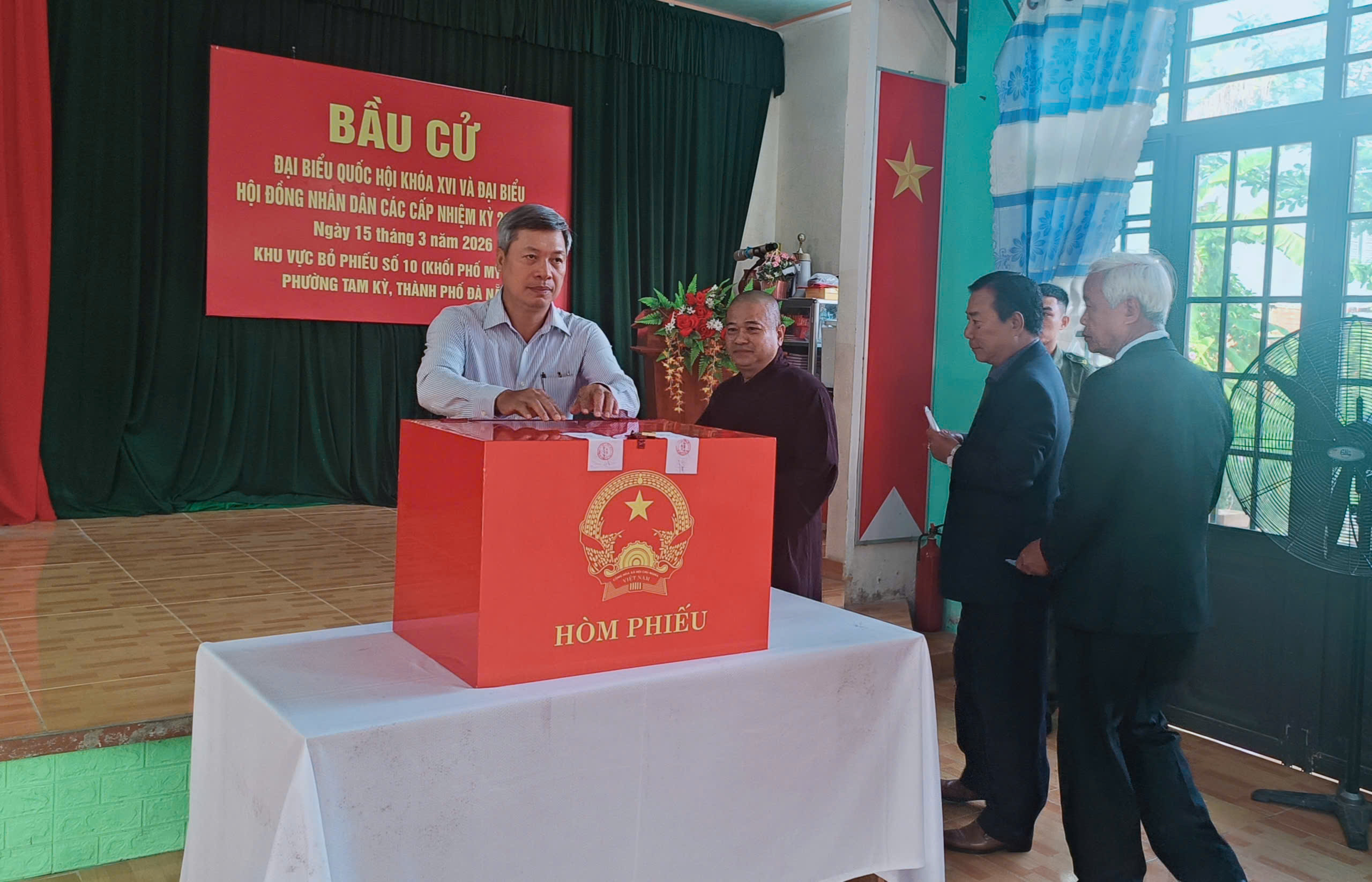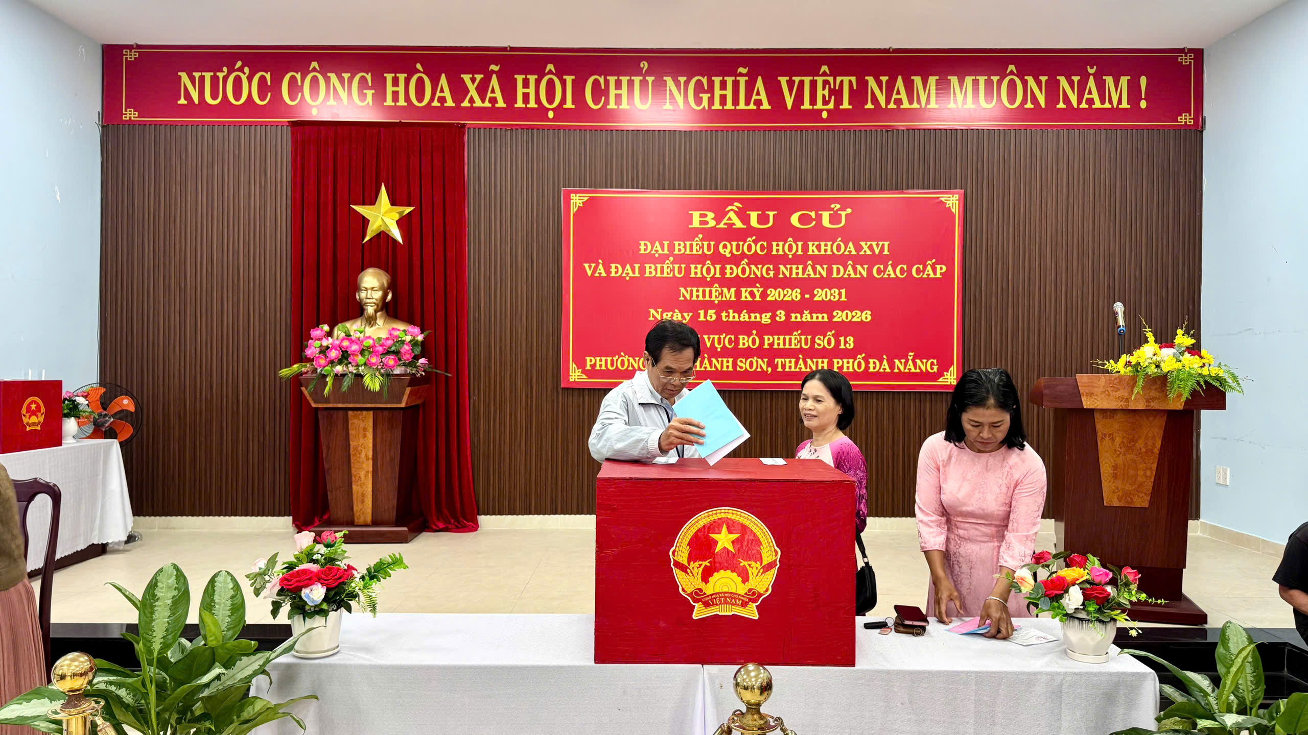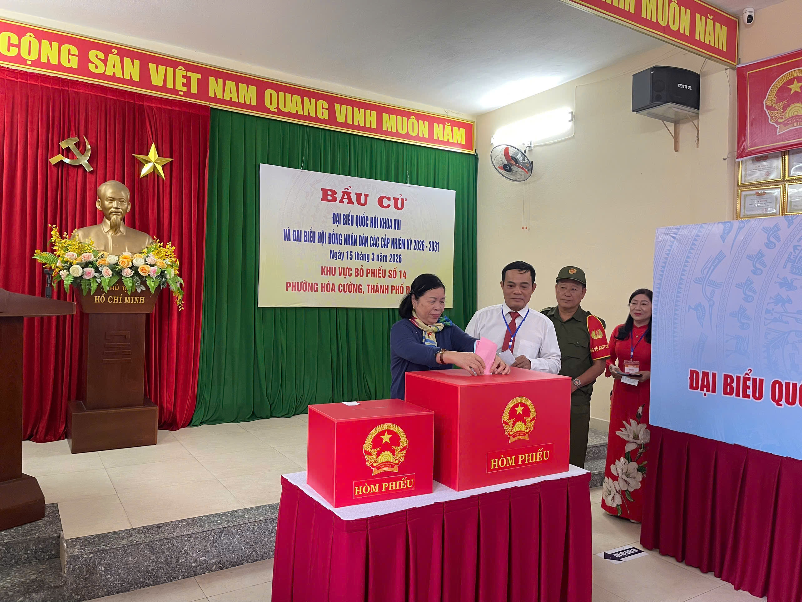 * Tại phường Ngũ Hành Sơn, sáng 15-3, cử tri thể hiện tinh thần trách nhiệm cao, thực hiện quyền và nghĩa vụ công dân, nô nức đi bầu cử đại biểu Quốc hội khóa XVI và đại biểu Hội đồng nhân dân các cấp nhiệm kỳ 2026 - 2031.