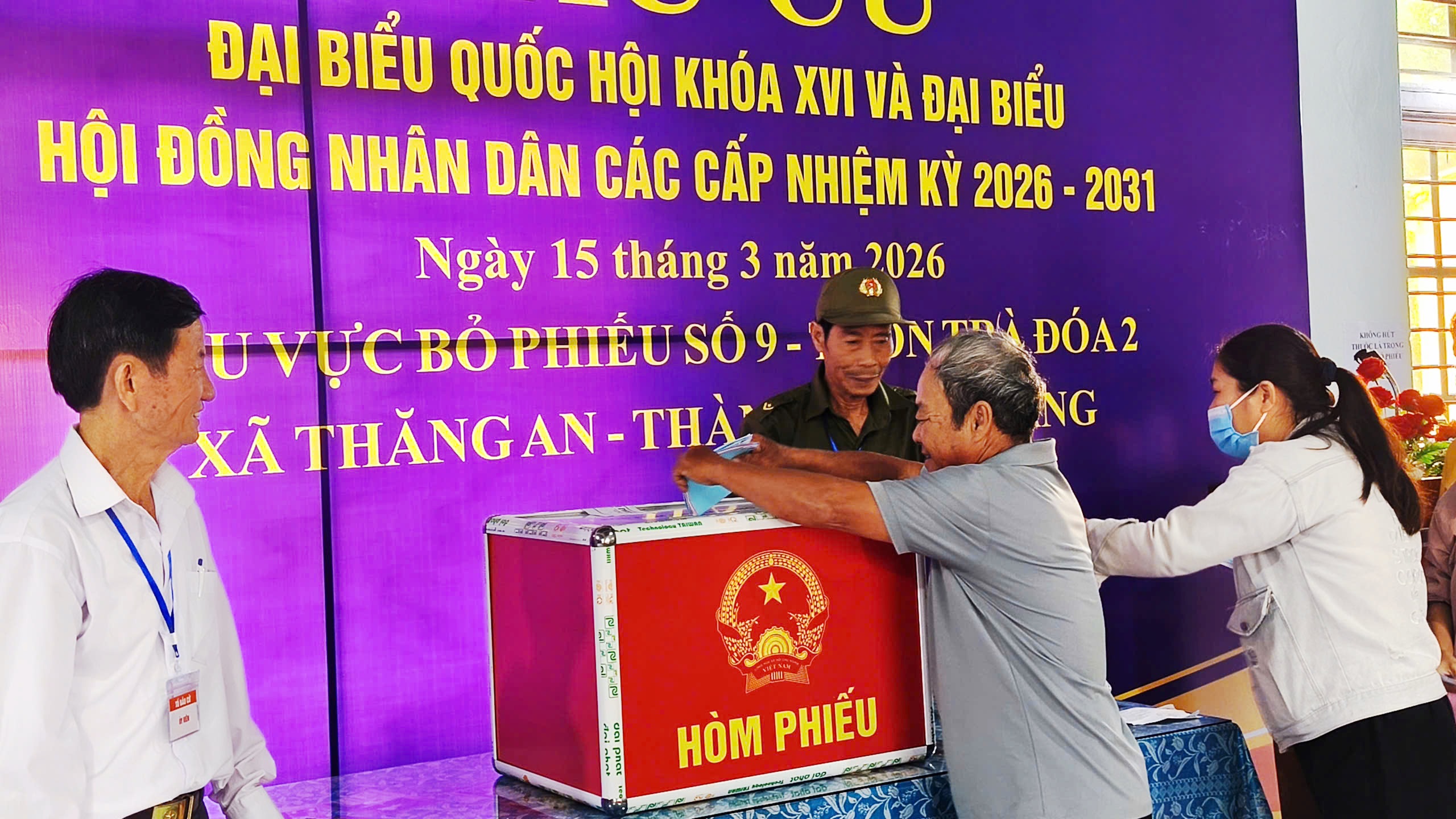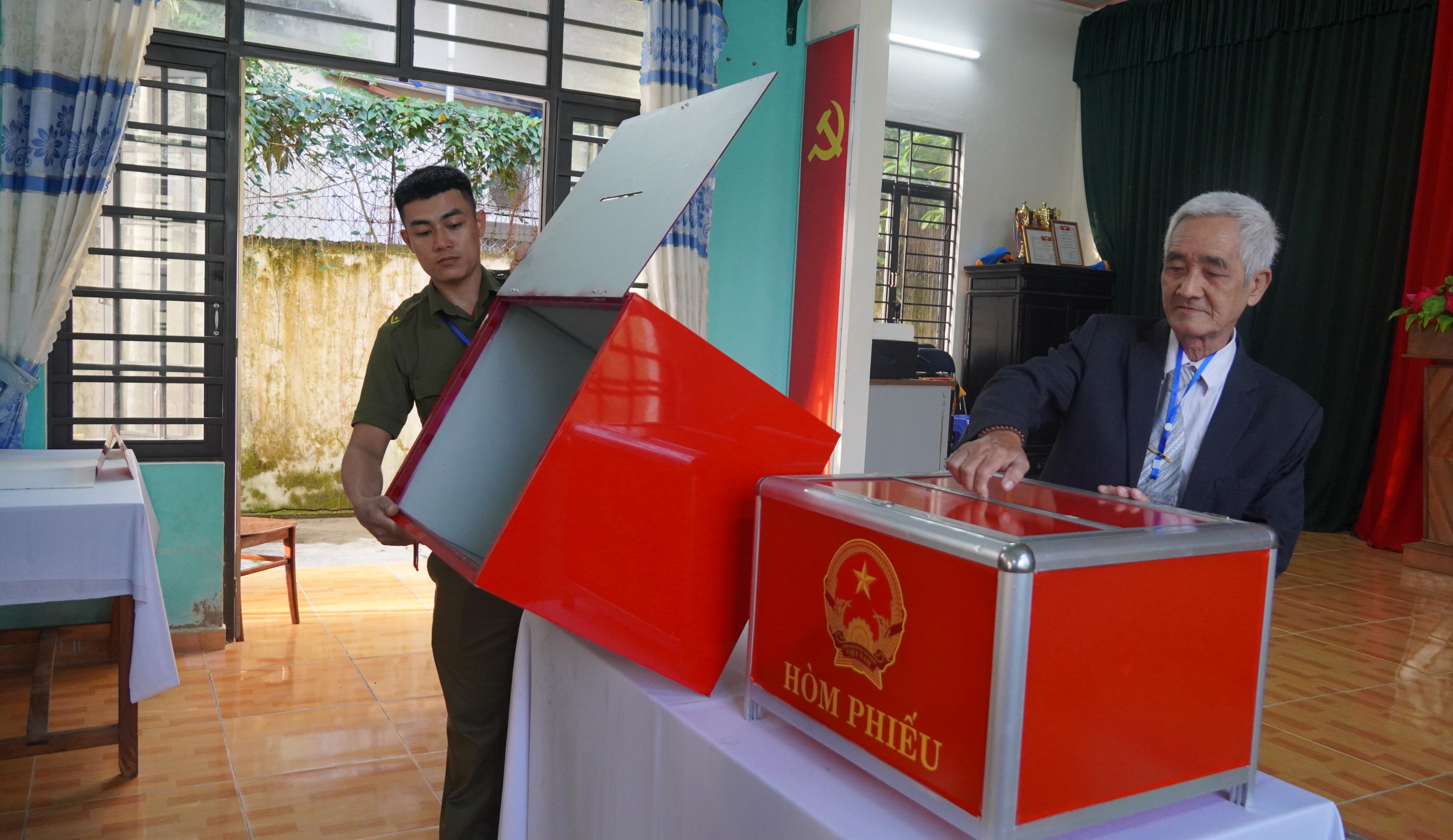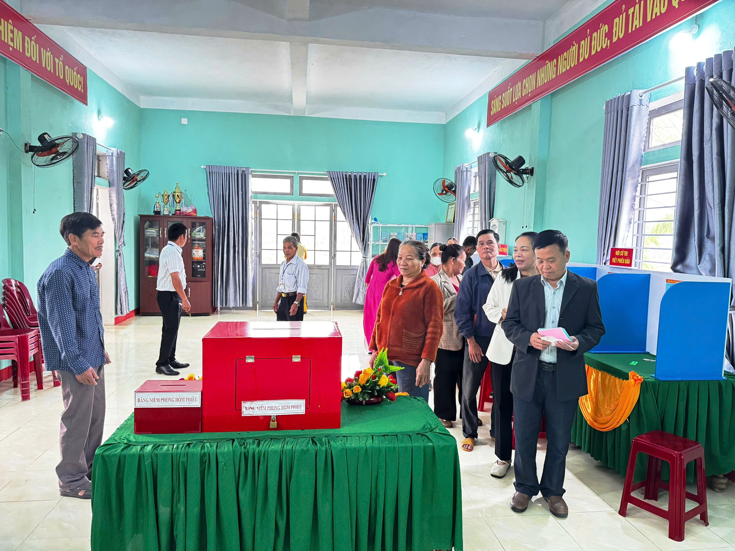 Công tác kiểm tra, niêm phong hòm phiếu được tiến hành nghiêm túc theo quy định, dưới sự chứng kiến của đông đảo cử tri. Cuộc bầu cử chính thức bắt đầu trong không khí trang nghiêm, dân chủ.