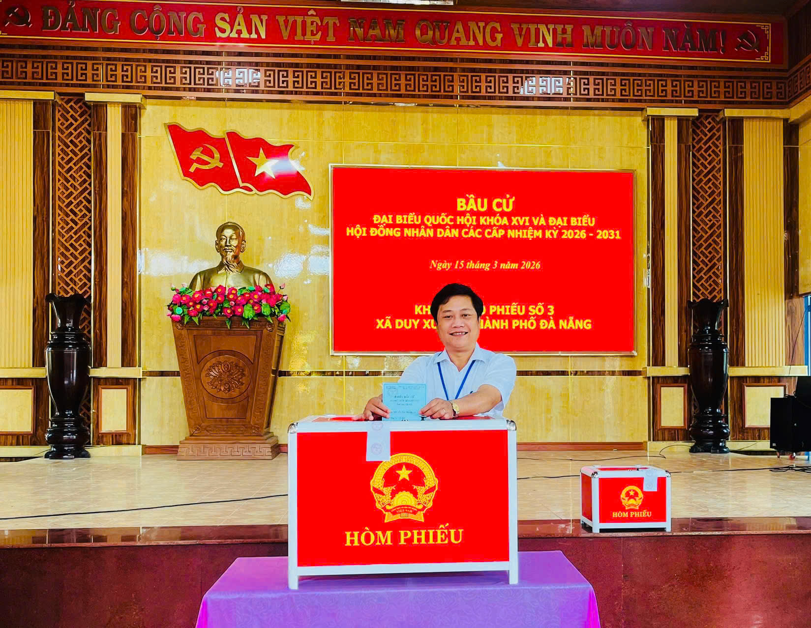 *Tại khu vực bỏ phiếu số 15, phường An Hải, Phó Chủ tịch Thường trực UBND thành phố Hồ Kỳ Minh tham dự lễ khai mạc Cuộc bầu cử đại biểu Quốc hội khóa XVI và đại biểu HĐND các cấp nhiệm kỳ 2026–2031.