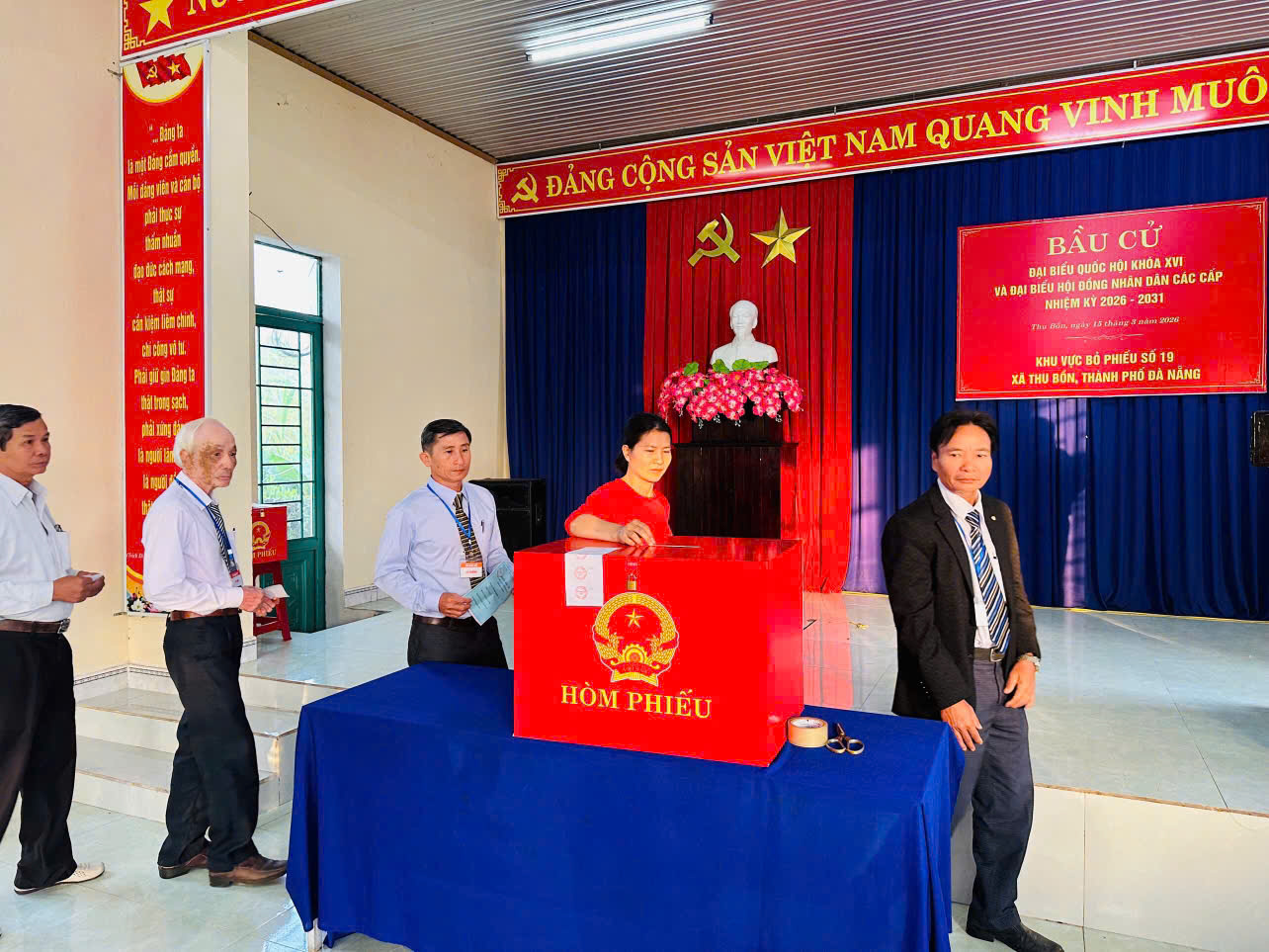 * Sáng 15-03 cử tri xã Thu Bồn nô nức tham gia ngày hội bầu cử đại biểu Quốc hội khóa XVI và đại biểu HĐND các cấp nhiệm kỳ 2026 – 2031. Ngay từ sáng sớm, đông đảo cử tri có mặt tại các khu vực bỏ phiếu trong không khí phấn khởi, trang nghiêm.