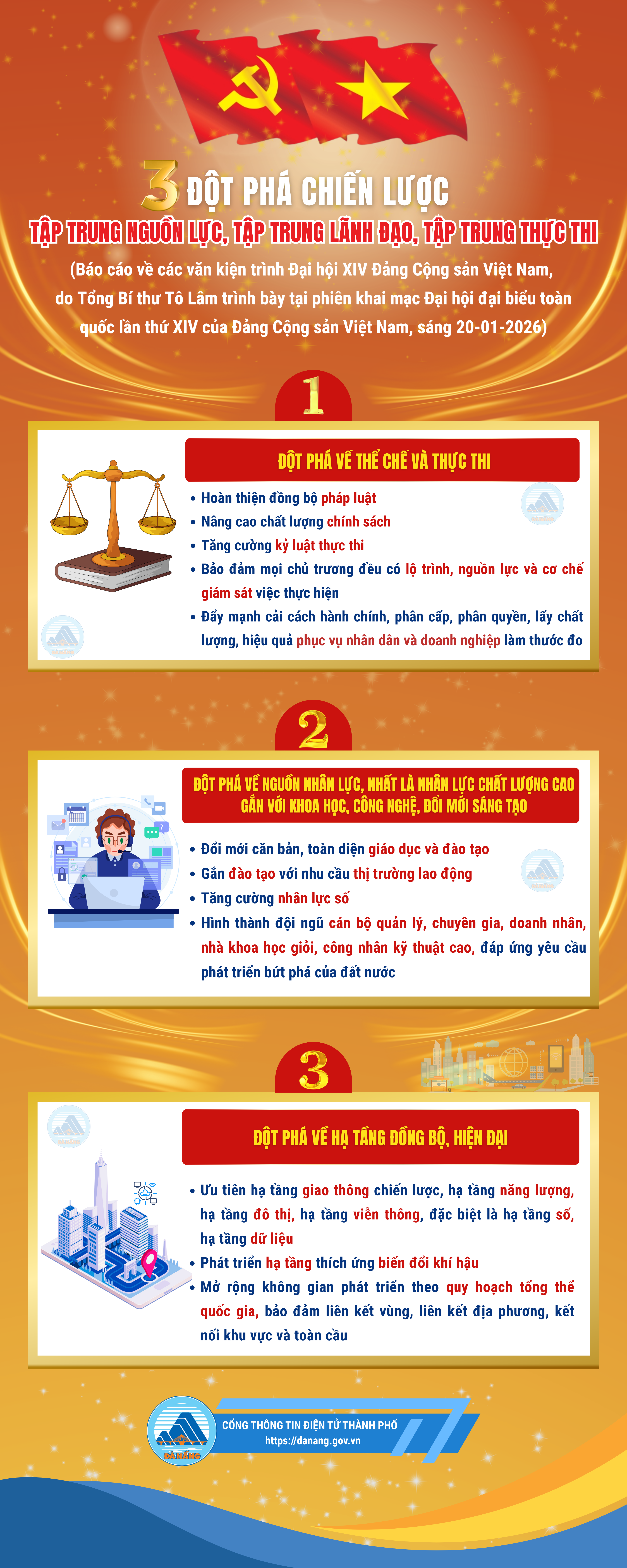 [Infographic] - Ba đột phá chiến lược để thực hiện mục tiêu phát triển đất nước trong giai đoạn tới