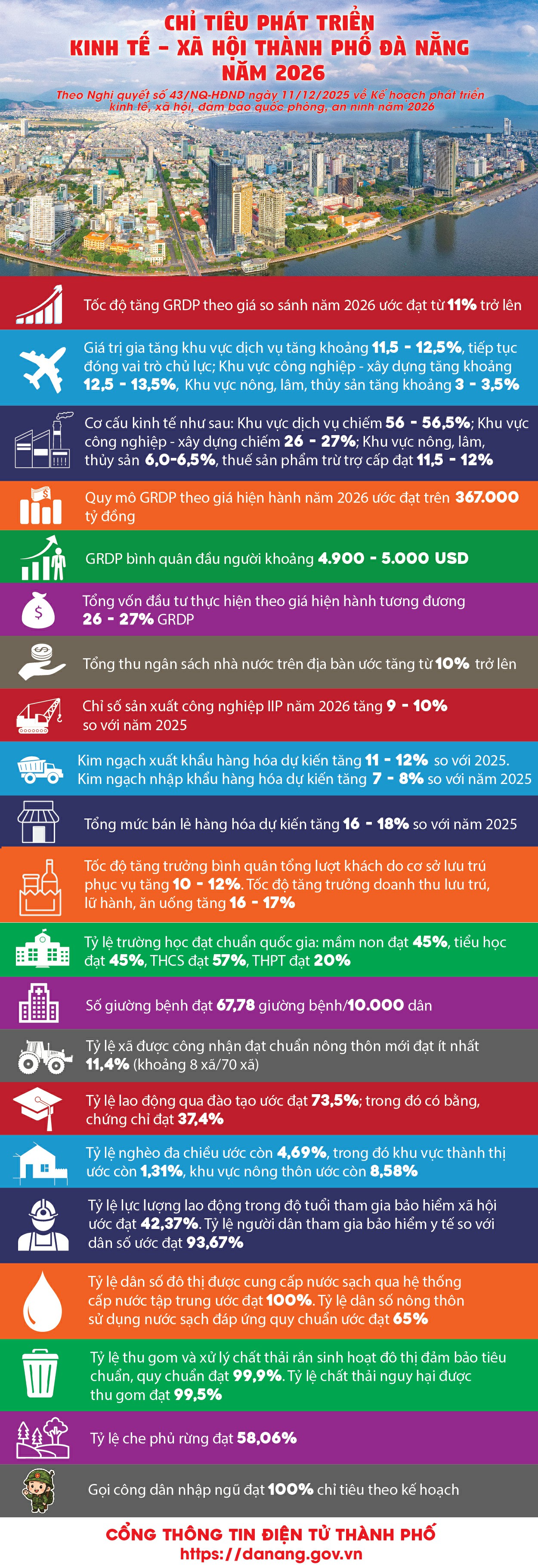 [Infographic] - Chỉ tiêu phát triển kinh tế - xã hội thành phố Đà Nẵng năm 2026