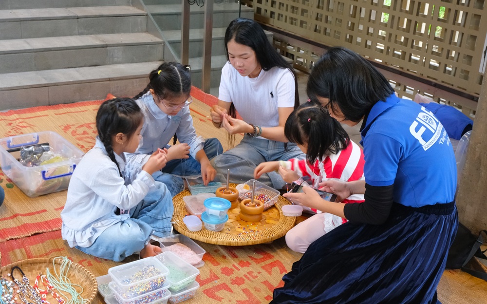 Các em nhỏ hào hứng, chăm chú tạo nên những món đồ thủ công đầy màu sắc