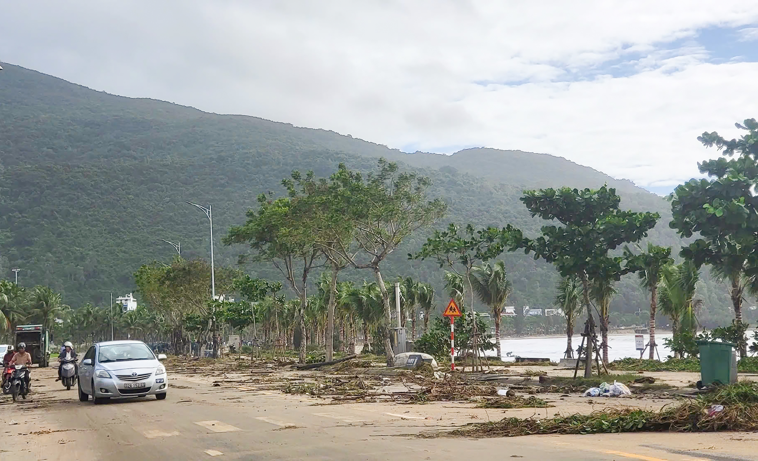 Theo ghi nhận, đoạn đường Hoàng Sa từ khu vực đối diện đường Lê Đức Thọ đến đường Vương Thừa Vũ (phường Sơn Trà) bị rác thải dạt vào chất thành đống do sóng lớn và mưa lớn cuốn trôi từ bờ biển vào. Nhiều cành cây gãy, lá rụng vương vãi khắp nơi, gây cản trở cho các phương tiện lưu thông.