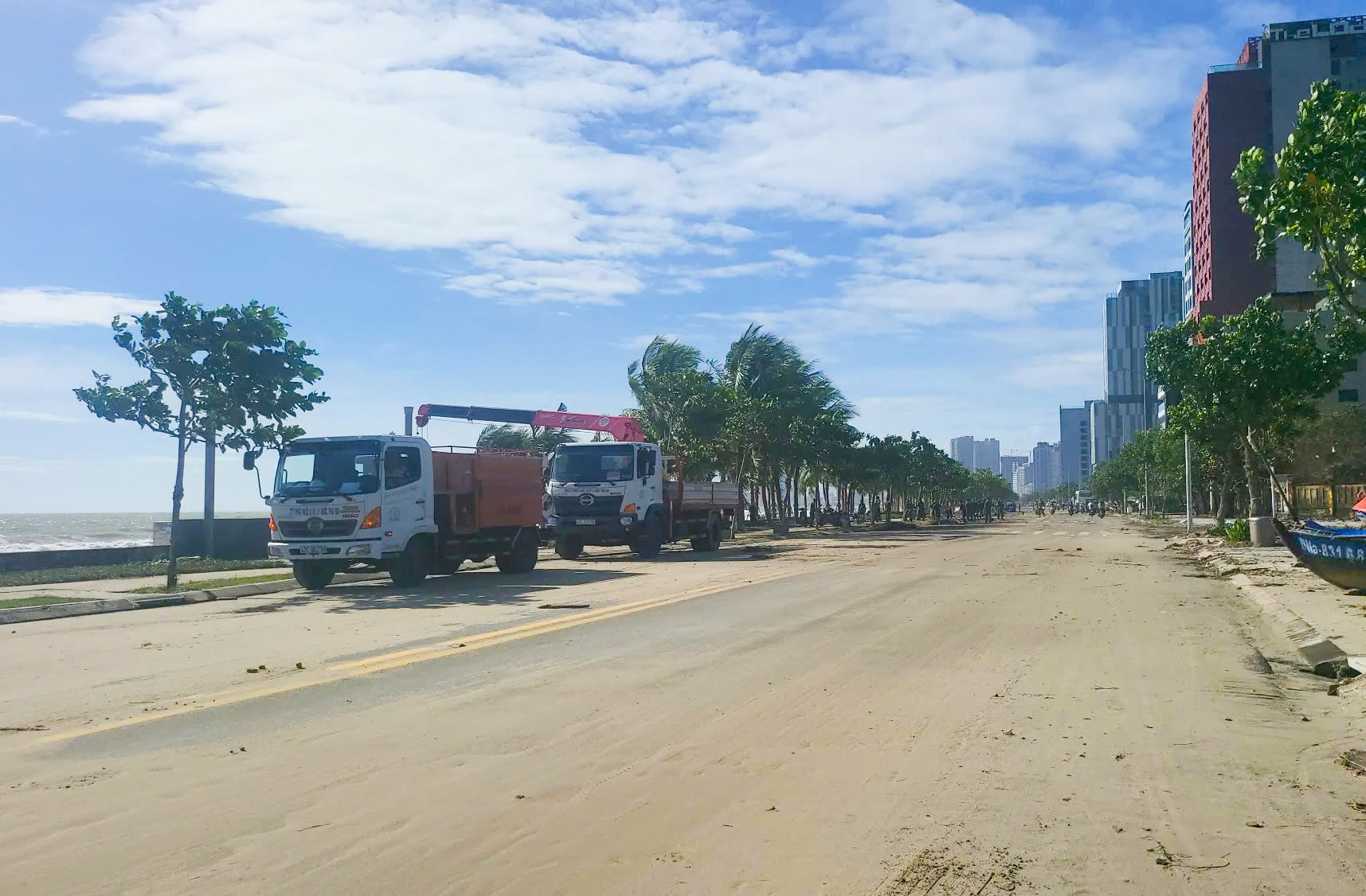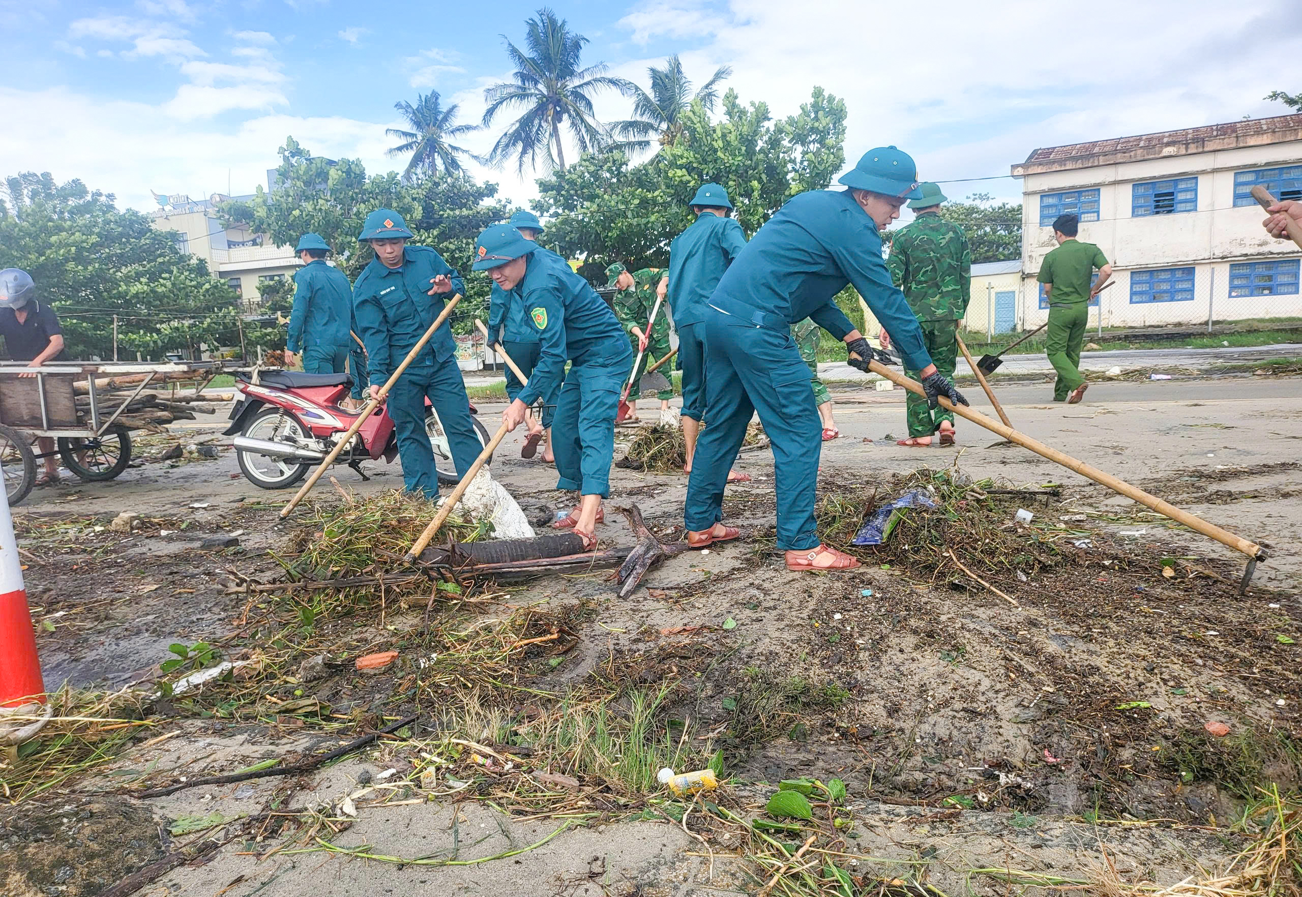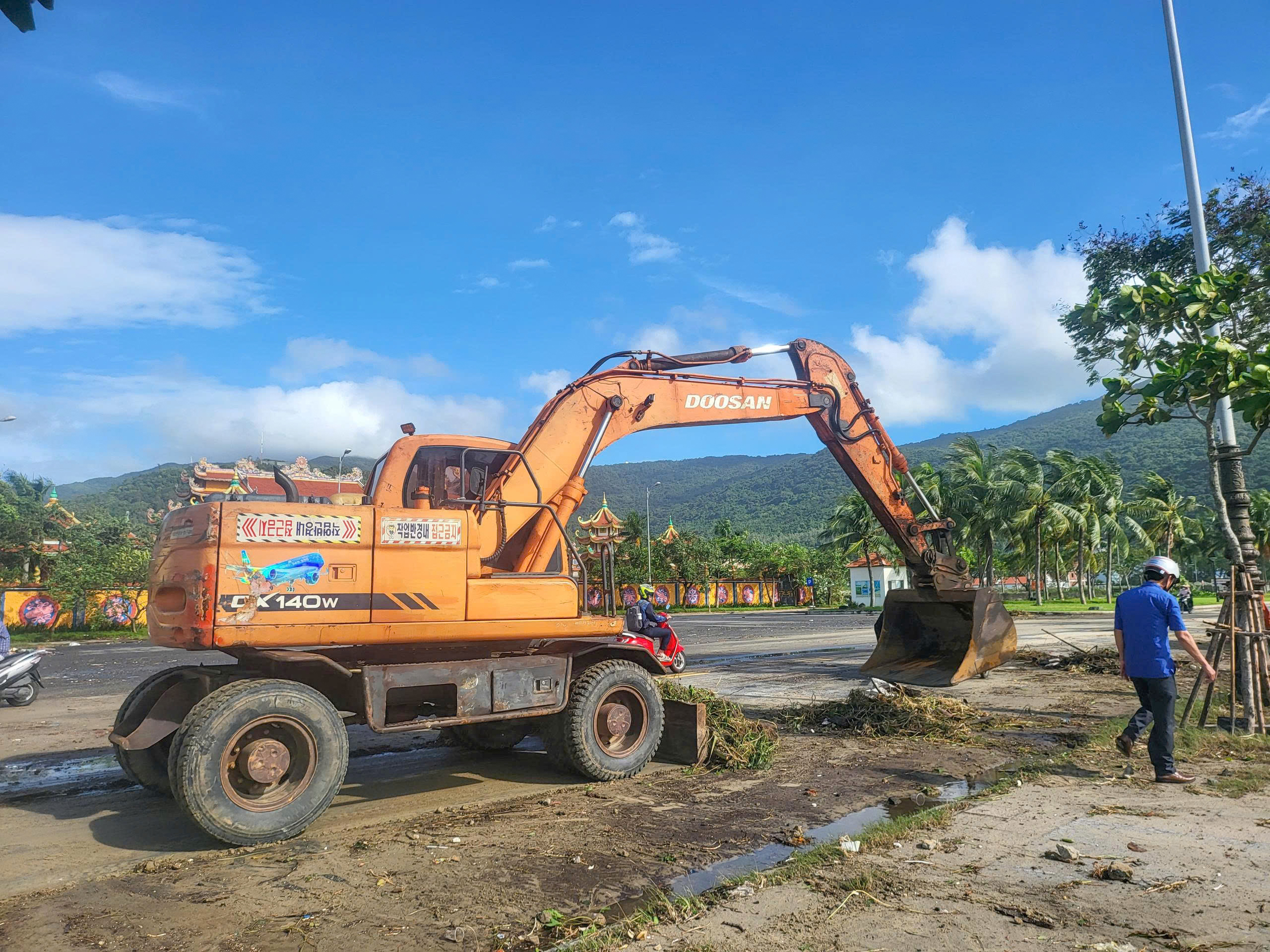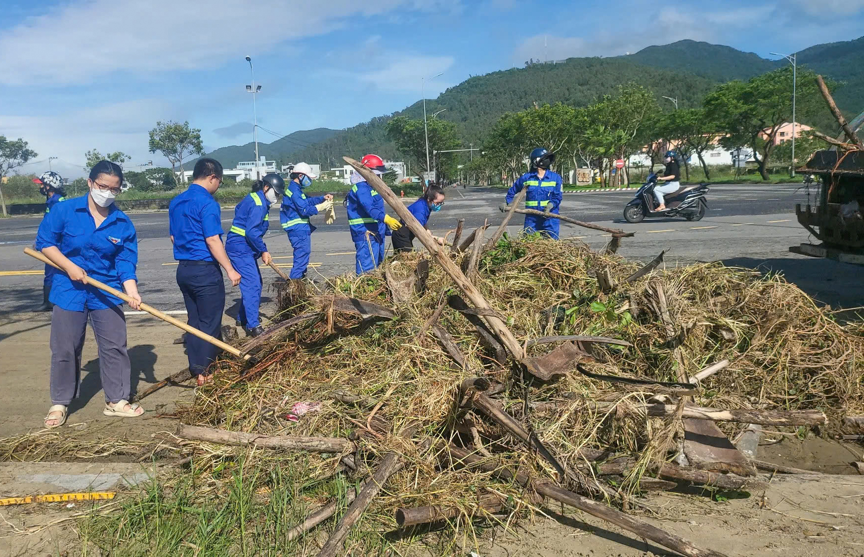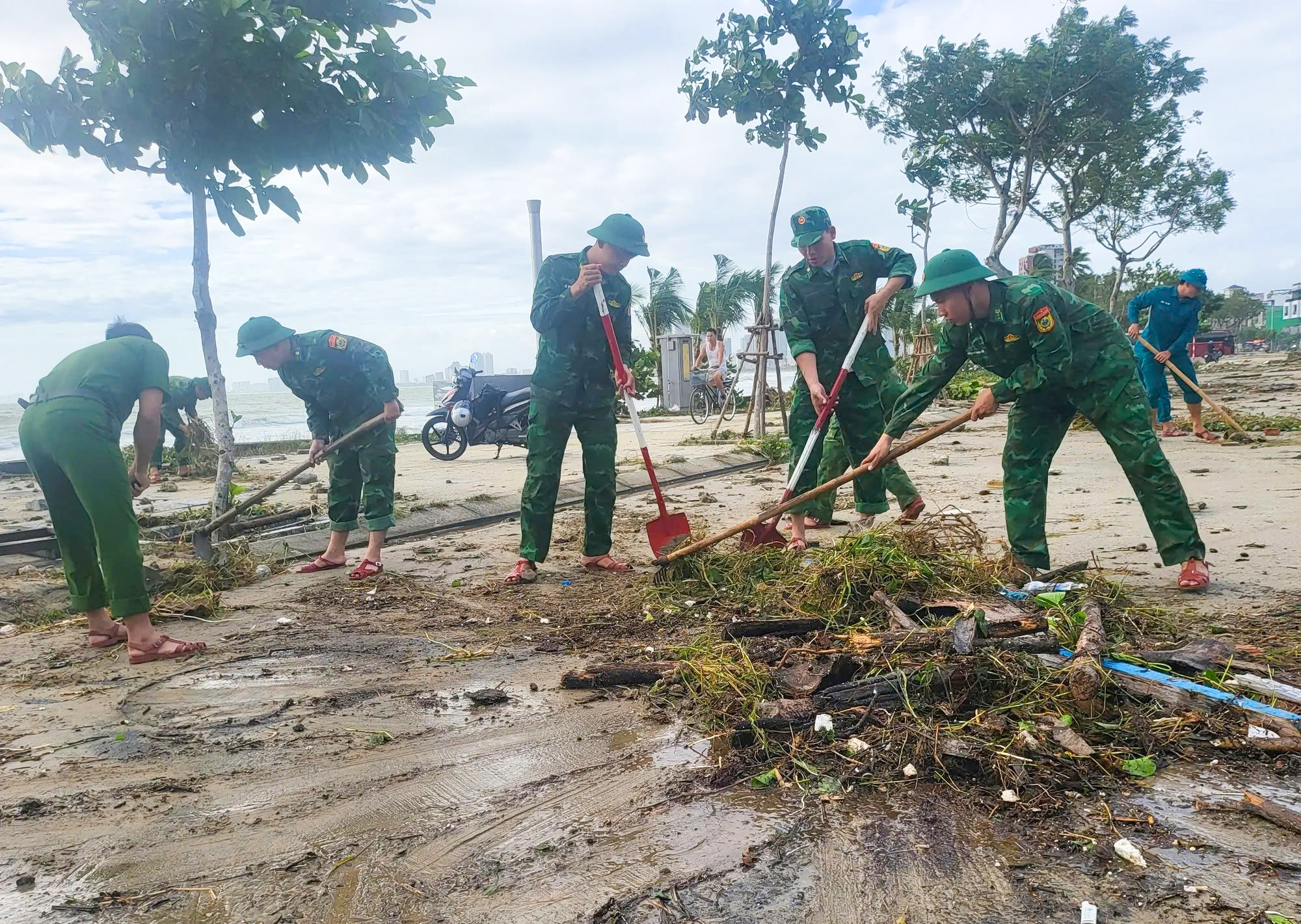 Các lực lượng chức năng phường Sơn Trà phối hợp cùng Ban Chỉ huy phòng thủ Khu vực 1 Cẩm Lệ, Đồn Biên phòng Sơn Trà, Trung đội pháo và các đơn vị liên quan đã huy động nhân lực, phương tiện tiến hành thu gom rác, cây gãy đổ, trả lại mặt đường thông thoáng cho người dân và du khách.