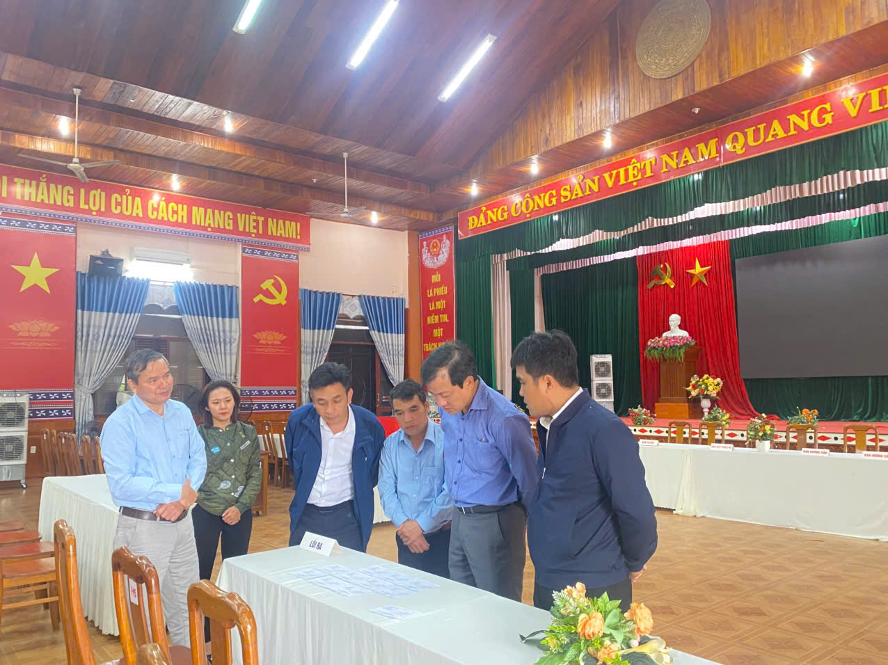 Ngay sau kiểm tra công tác bầu cử tại xã, Đoàn đến kiểm tra thực tế tại một số điểm bầu cử, trong đó điểm bầu cử thuộc thôn Ngã Ba.