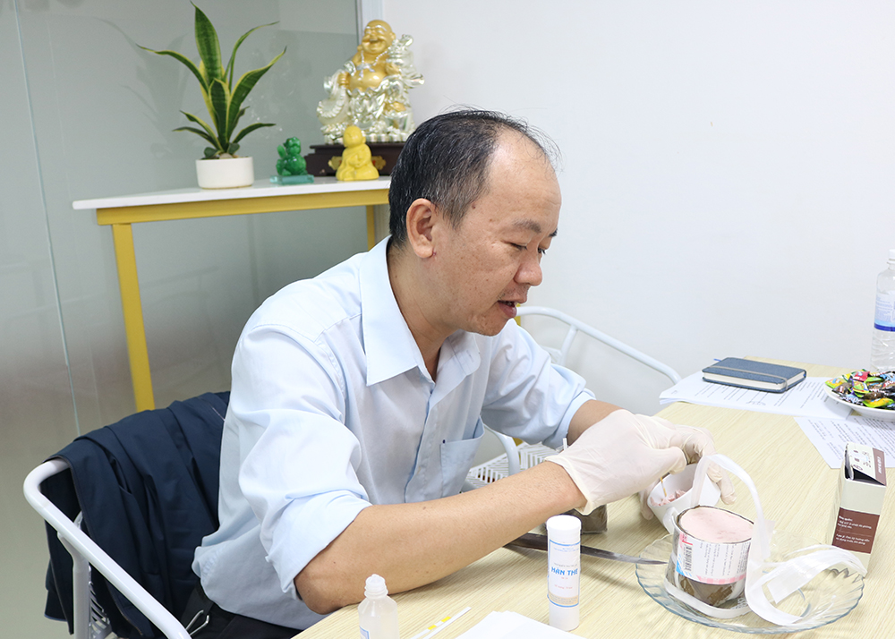 Trong quá trình kiểm tra, Đoàn thực hiện test nhanh hàn the trong chả và kết hợp tuyên truyền, hướng dẫn doanh nghiệp tuân thủ các quy định về an toàn thực phẩm.