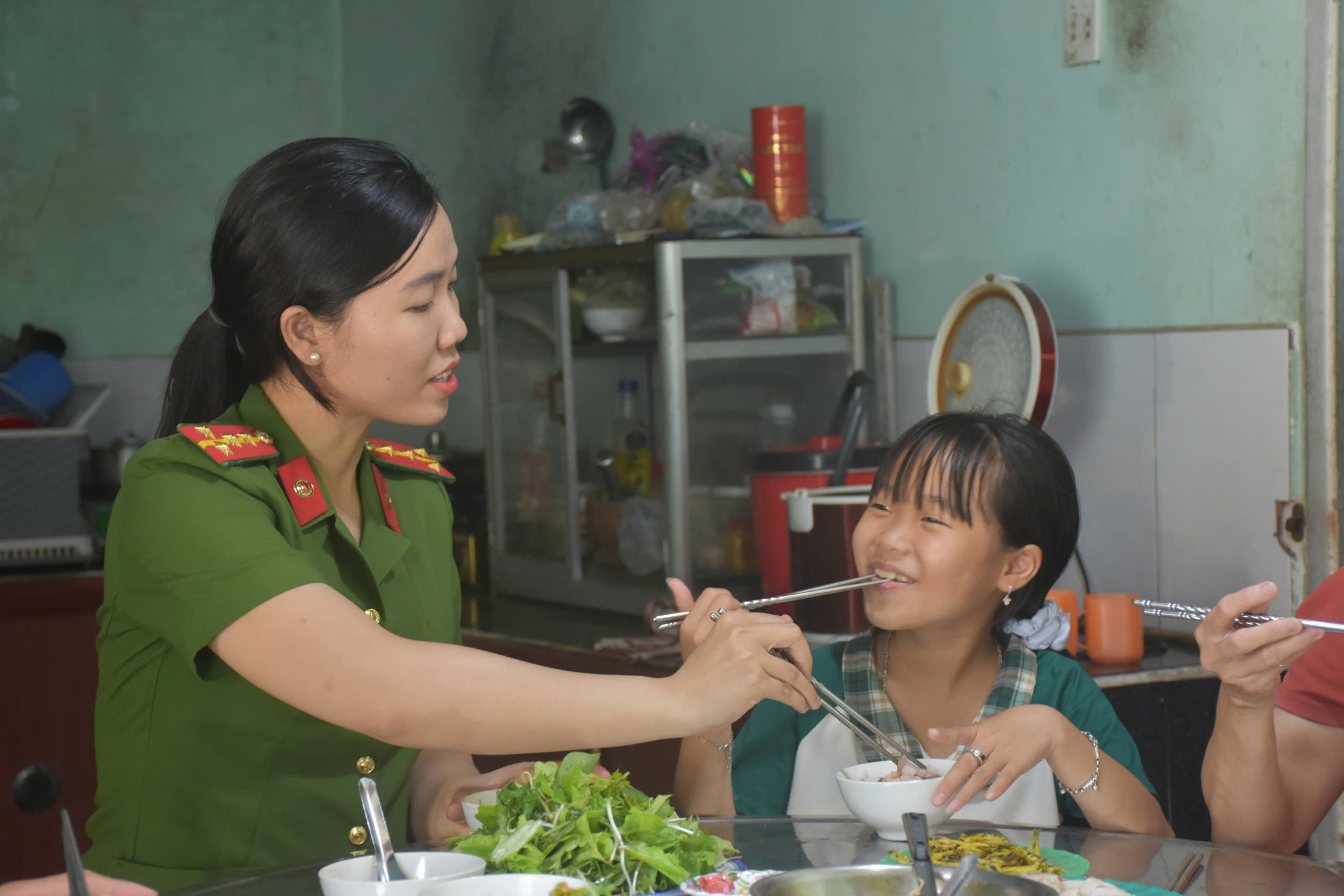 Không chỉ hỗ trợ sách vở, quần áo, chi phí học tập, các đoàn viên, thanh niên Công an xã còn thường xuyên quan tâm, động viên, kèm cặp việc học, giúp em có thêm điểm tựa tinh thần để tiếp tục đến trường. Những buổi trò chuyện giản dị, những lần hướng dẫn bài vở đã dần xóa đi khoảng cách, vun đắp nên tình cảm gắn bó như người thân trong gia đình.