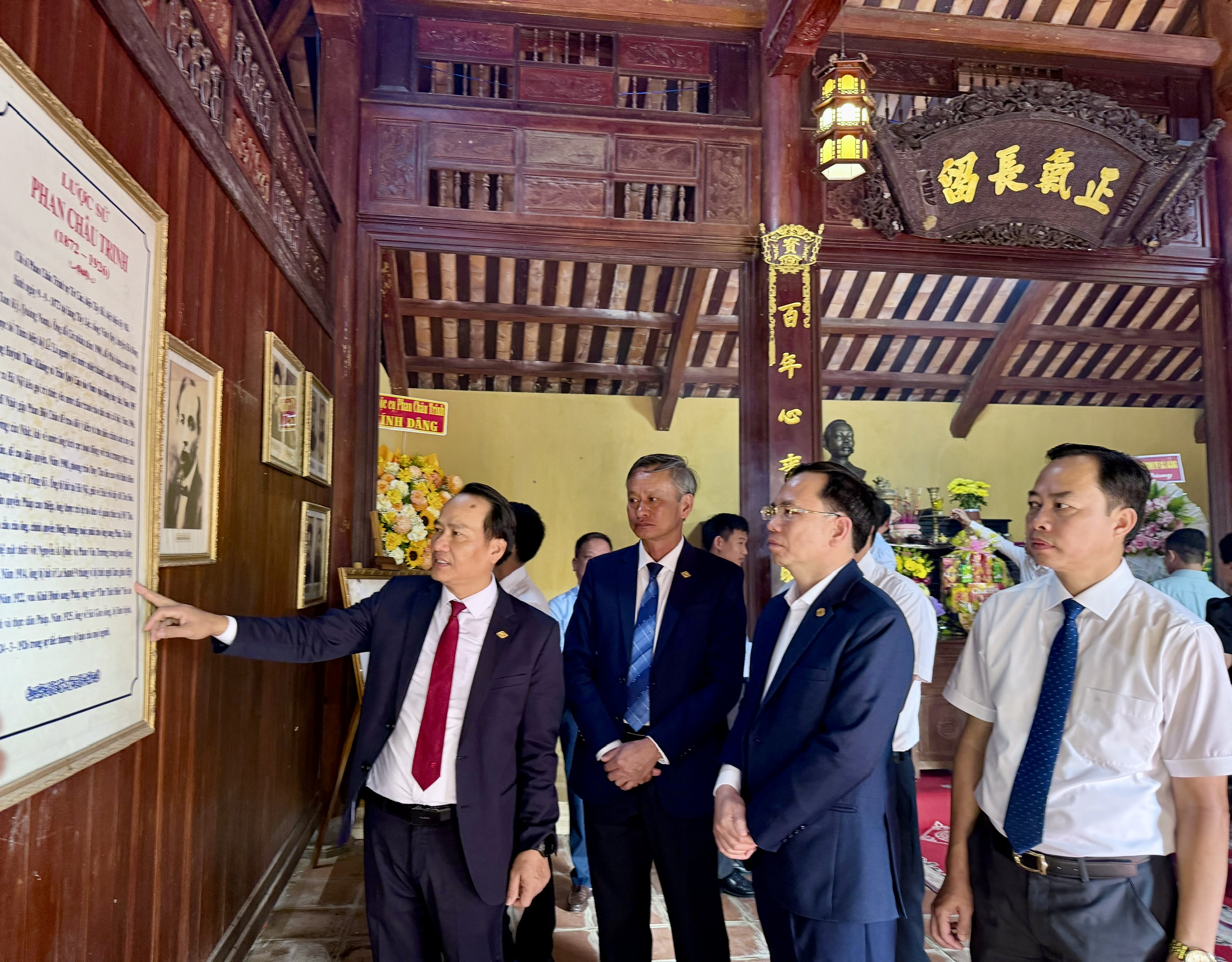 Phó Bí thư Thường trực Thành uỷ Nguyễn Đình Vĩnh tham quan, tìm hiểu tư liệu về nhà yêu nước Phan Châu Trinh tại Nhà lưu niệm.