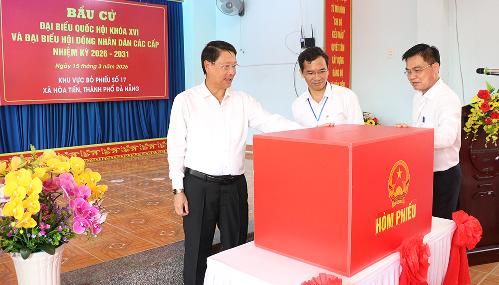 * Phó Bí thư Thành ủy, Chủ tịch HĐND thành phố Nguyễn Đức Dũng kiểm tra các điểm bỏ phiếu bầu cử đại biểu Quốc hội khóa XVI và đại biểu HĐND các cấp nhiệm kỳ 2026 - 2031 tại phường Hòa Cường và phường Hòa Xuân.