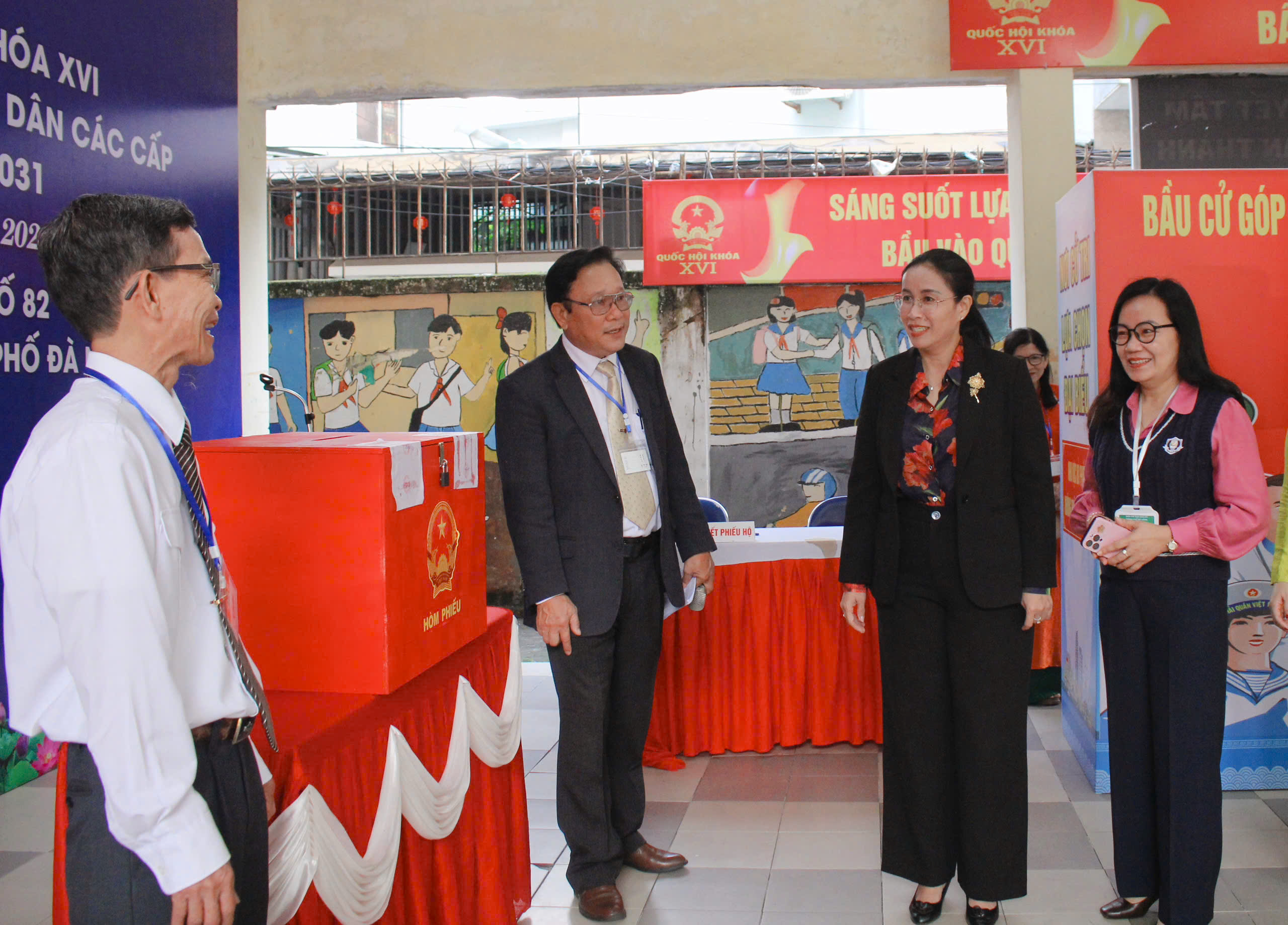 Các khu vực bỏ phiếu được bố trí trang trọng, đúng quy định; công tác trang trí, cổ động trực quan, tuyên truyền về bầu cử được thực hiện đồng bộ, tạo không khí phấn khởi, dân chủ trong ngày hội lớn của toàn dân. Thông tin về ứng cử viên được niêm yết rõ ràng, thuận tiện để cử tri theo dõi, nghiên cứu trước khi thực hiện quyền và nghĩa vụ công dân. Lực lượng chức năng triển khai phương án bảo đảm an ninh trật tự, an toàn giao thông, phòng cháy chữa cháy, tạo điều kiện thuận lợi để cử tri tham gia bỏ phiếu.