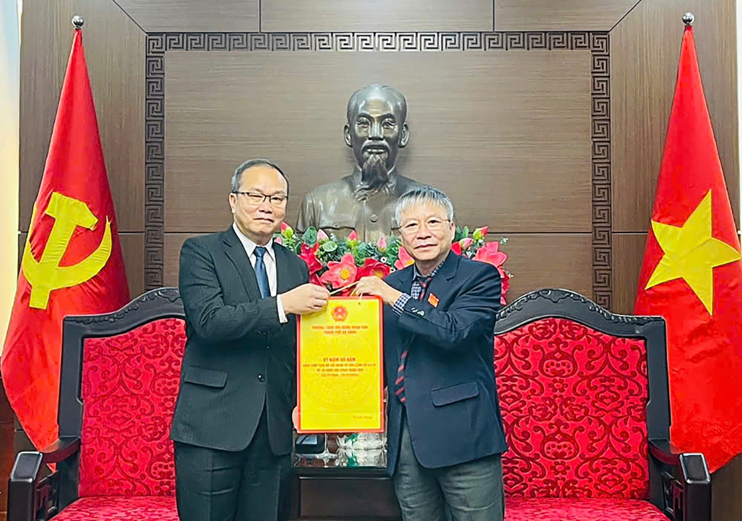 Phó Chủ tịch Ủy ban MTTQ Việt Nam thành phố cảm ơn sự phối hợp, hỗ trợ nhiệt tình và đóng góp tích cực của cá nhân ông Souphanh Hadaoheuang trong nhiệm kỳ công tác vừa qua tại thành phố.