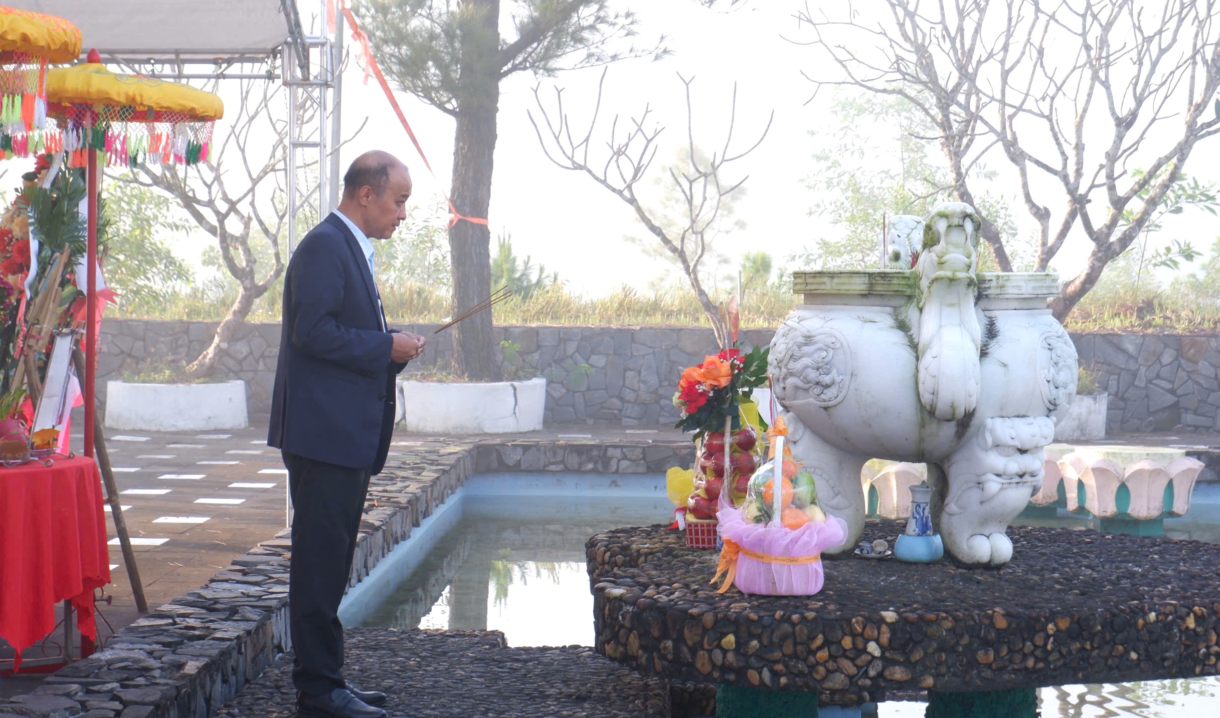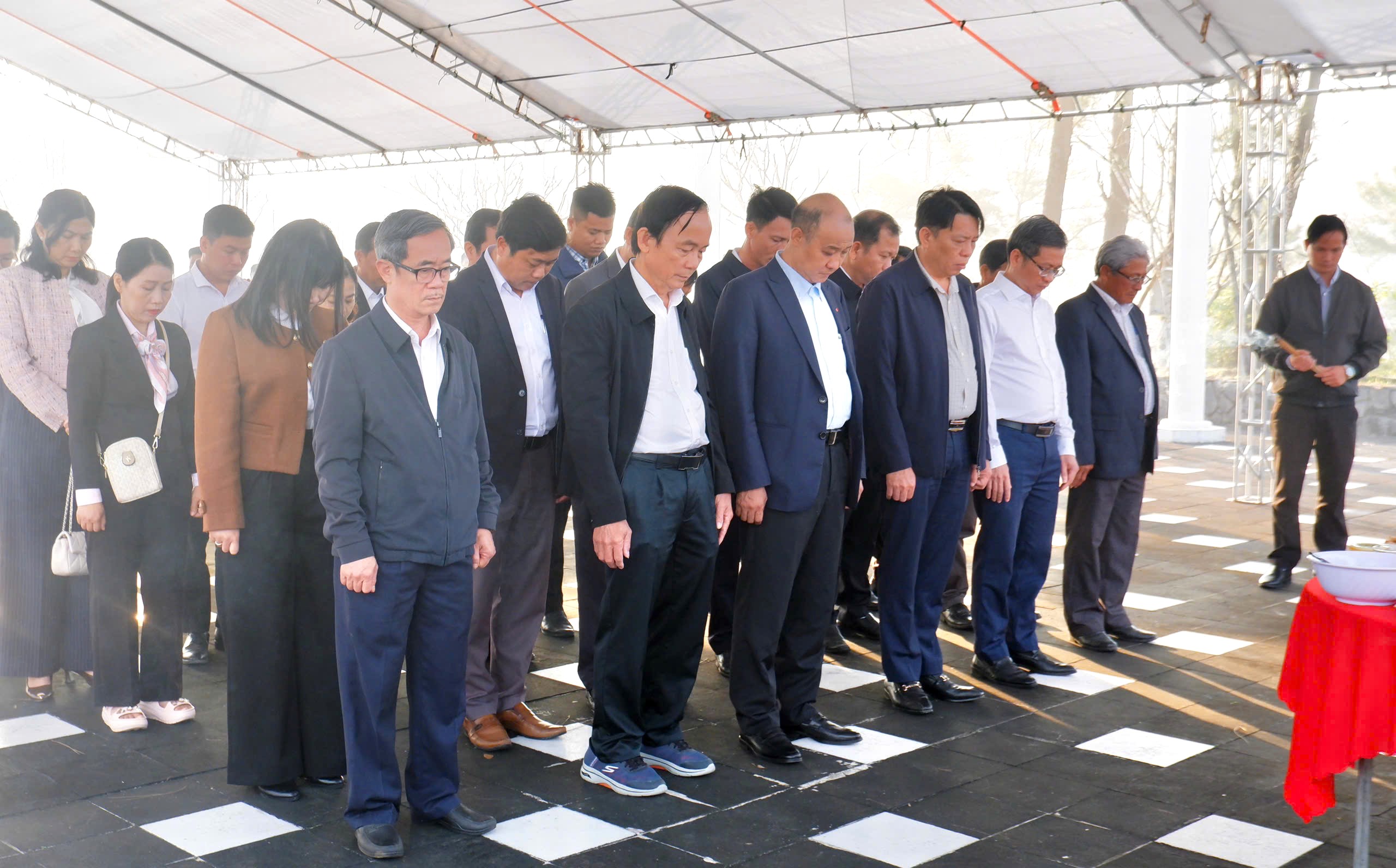 Buổi lễ diễn ra trong không khí trang nghiêm, thành kính. Trước anh linh các Anh hùng Liệt sĩ và đồng bào yêu nước đã anh dũng hy sinh vì độc lập, tự do của dân tộc, các đại biểu đã kính cẩn dâng hoa, dâng hương và dành phút mặc niệm tưởng nhớ, bày tỏ lòng biết ơn sâu sắc đối với những cống hiến, hy sinh to lớn cho sự nghiệp giải phóng dân tộc, thống nhất đất nước.