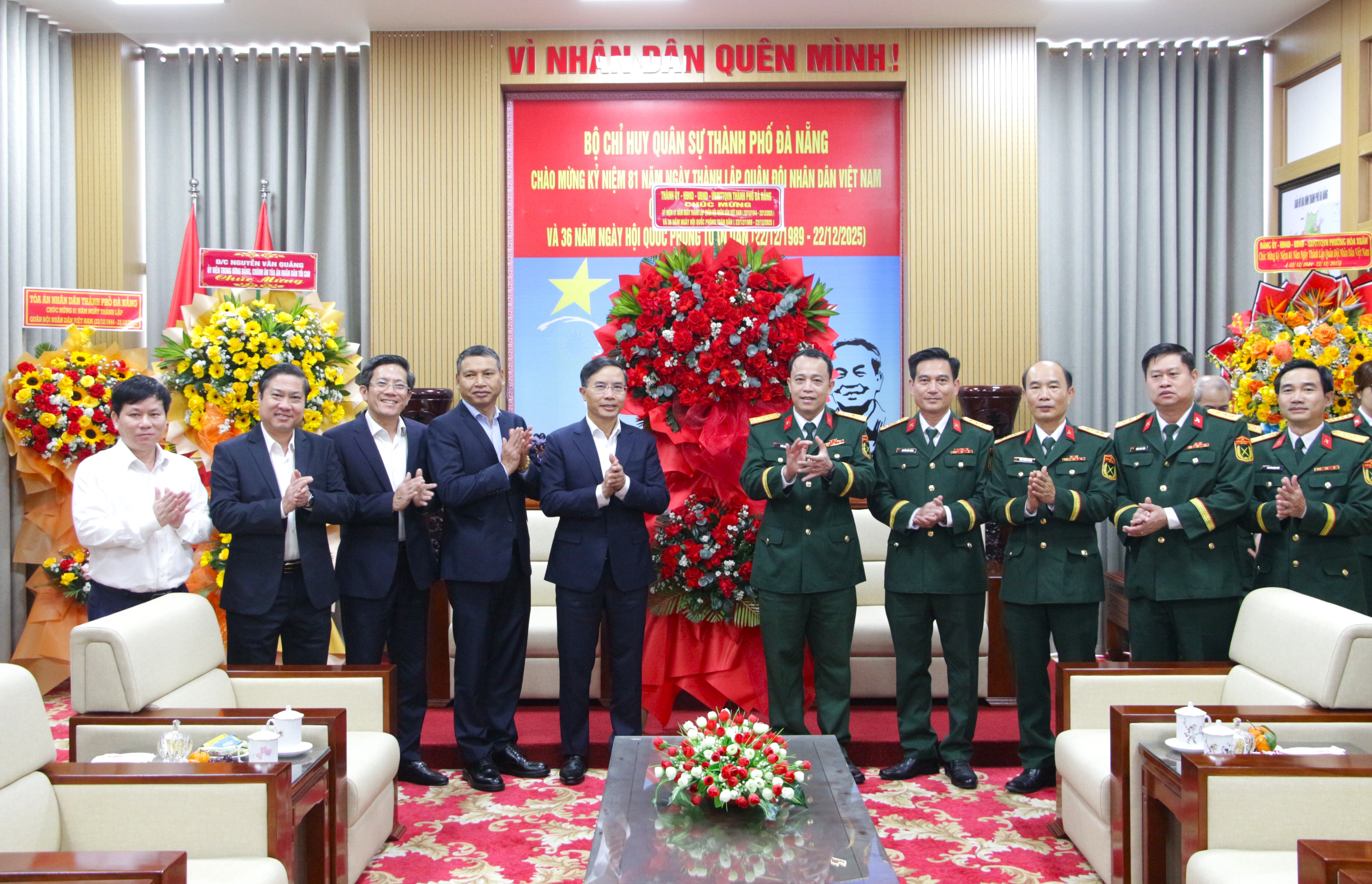 Sáng 22-12, Chủ tịch UBND thành phố Phạm Đức Ấn cùng Phó Chủ tịch Thường trực UBND thành phố Hồ Kỳ Minh, Phó Chủ tịch UBND thành phố Phan Thái Bình, Phó Chủ tịch UBND thành phố Trần Nam Hưng đến thăm, chúc mừng Bộ Chỉ huy Quân sự thành phố. Cùng đi có Chánh Văn phòng UBND thành phố Nguyễn Như Công.