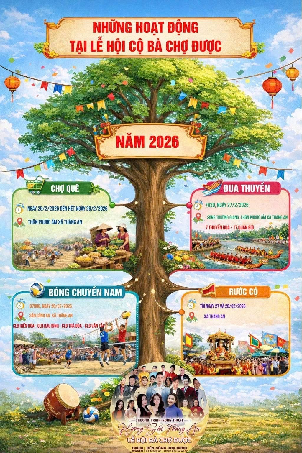 Ngày 25-02 (mùng 9 tháng Giêng), không gian chợ quê được khai mạc, tái hiện sinh động hình ảnh sinh hoạt buôn bán truyền thống của làng quê xứ Quảng. Ngay sau đó là các hoạt động hô hát bài chòi, những trò chơi dân gian quen thuộc, mang lại không khí vui tươi, rộn ràng cho ngày hội.