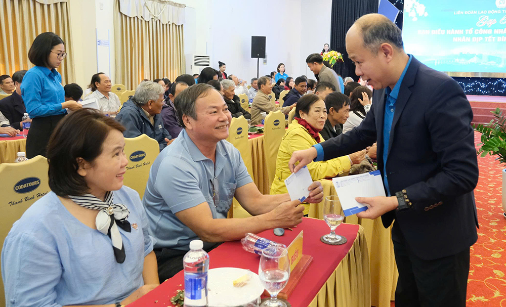Dịp này, LĐLĐ thành phố trao quà Tết cho các tổ trưởng, tổ phó đại diện 74 tổ công nhân tự quản, mỗi suất quà trị giá 1 triệu đồng.