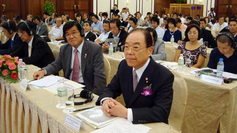 Thượng nghị sĩ Iwao Matsuda, Đại sứ Mitsuo Sakaba tham dự Diễn đàn kinh tế Việt - Nhật lần 3. Ảnh: HC