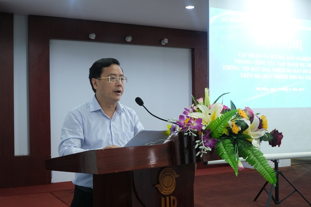 Phát biểu khai mạc, Phó Giám đốc Sở Nông nghiệp và Môi trường Trần Quốc Hùng cho biết, hội nghị nhằm kịp thời nâng cao năng lực và kiến thức chuyên môn cho đội ngũ cán bộ cơ sở trong lĩnh vực đo đạc, quản lý đất đai. Rèn luyện kỹ năng thao tác, khai thác và cập nhật dữ liệu trên Hệ thống thông tin đất đai, đáp ứng yêu cầu đẩy mạnh ứng dụng công nghệ thông tin và chuyển đổi số trong công tác quản lý nhà nước về đất đai.
