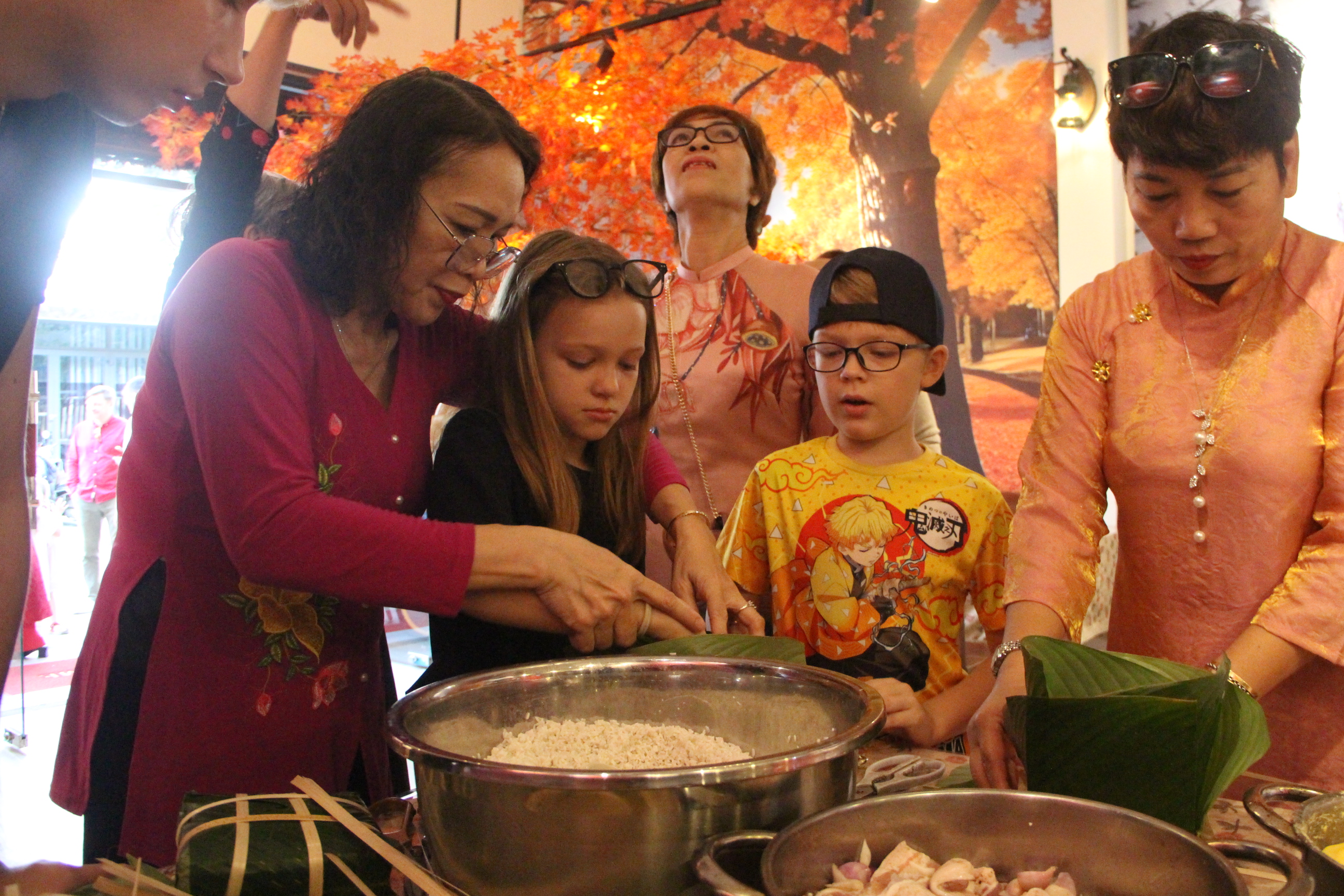 Trong khuôn khổ chương trình, người Nga, đặc biệt là sinh viên và thiếu nhi, đã trực tiếp tham gia hướng dẫn và trải nghiệm cách gói bánh chưng truyền thống.