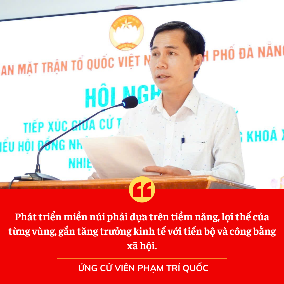 Đối với ứng cử viên Phạm Trí Quốc, là người con của quê hương xứ Quảng, ông luôn dành sự quan tâm đặc biệt đến sự phát triển của khu vực miền núi, trong đó có vùng Trà My – nơi giàu truyền thống cách mạng và bản sắc văn hóa.
