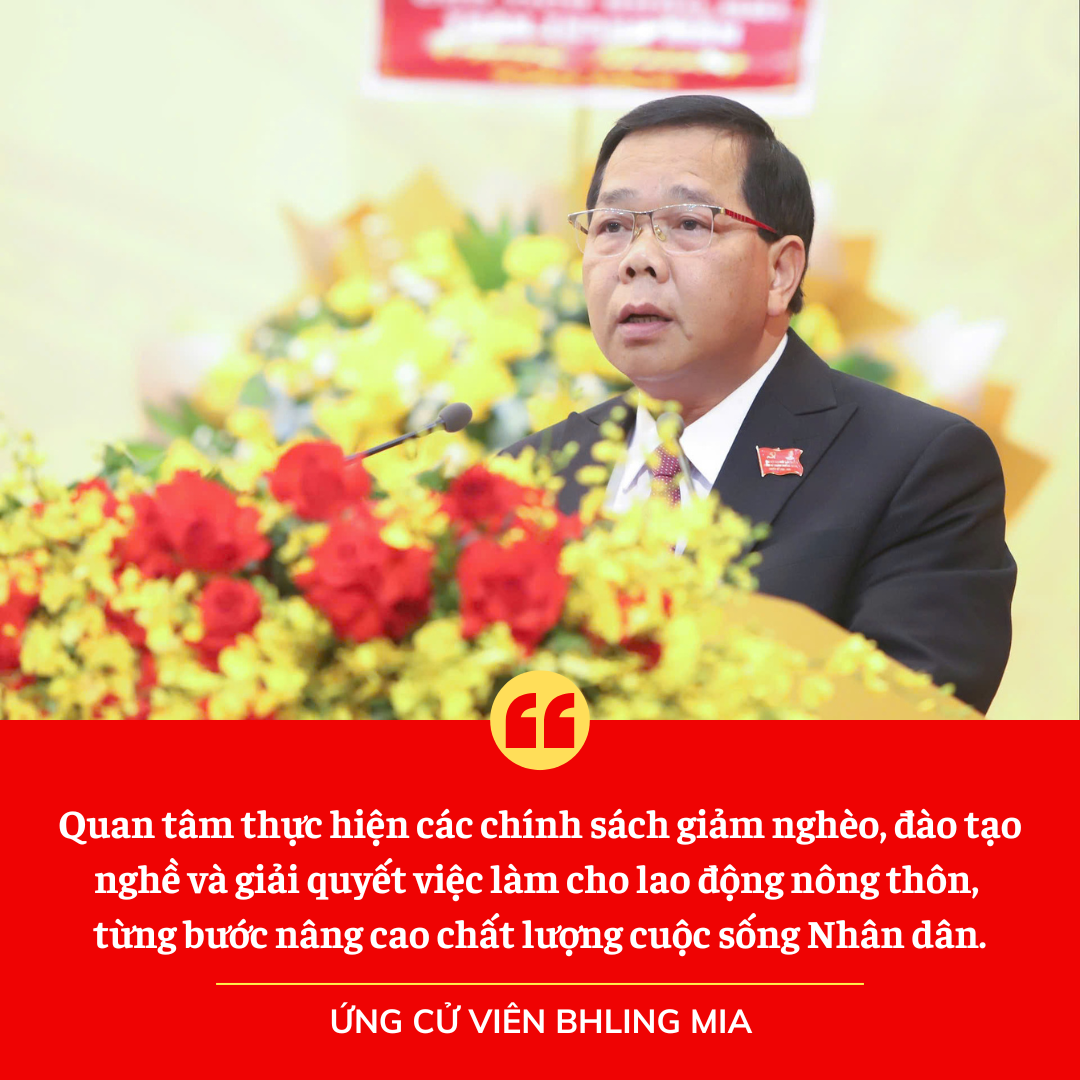 Ông Bhling Mia cho biết sẽ tập trung đề xuất các cơ chế, chính sách nhằm thúc đẩy phát triển khu vực miền núi; quan tâm đầu tư hạ tầng giao thông, điện, nước sinh hoạt, y tế và giáo dục; triển khai hiệu quả các chương trình giảm nghèo bền vững, đào tạo nghề và giải quyết việc làm cho lao động địa phương.