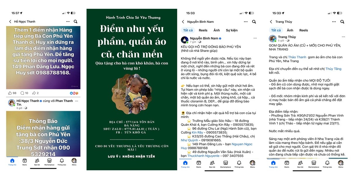Trên mạng xã hội Facebook, các bài viết kêu gọi ủng hộ hàng hóa được chia sẻ liên tục. Bên dưới phần bình luận là biết bao tấm lòng gửi về vùng lũ: người gửi tiền, người hỏi địa chỉ để mang thêm hàng, người xin đi cùng đoàn để góp sức… Mỗi dòng bình luận đều đong đầy yêu thương hướng về đồng bào đang hoạn nạn.