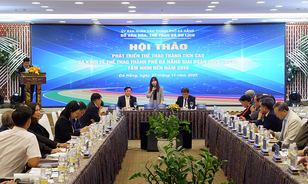 Chiều 27-11, Sở Văn hóa, Thể thao và Du lịch thành phố tổ chức Hội thảo Phát triển thể thao thành tích cao và Kinh tế thể thao thành phố Đà Nẵng giai đoạn 2025-2030, tầm nhìn đến năm 2045. Tham dự hội thảo có Phó Chủ tịch UBND thành phố Nguyễn Thị Anh Thi.
