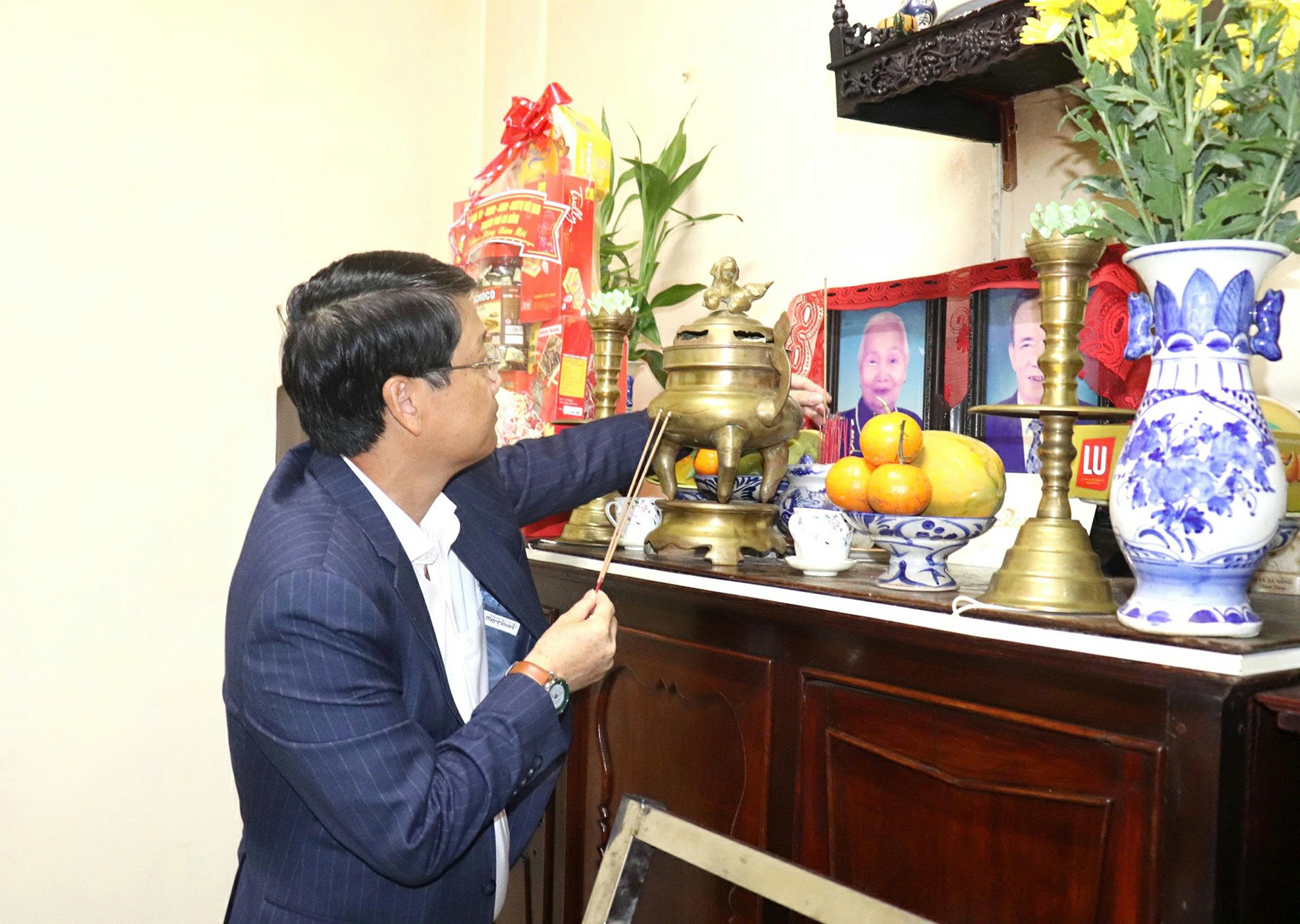 Tại các gia đình đến thăm, Phó Bí thư Thành ủy bày tỏ lòng biết ơn sâu sắc trước những đóng góp, hy sinh của các đồng chí cho sự nghiệp đấu tranh giải phóng dân tộc.