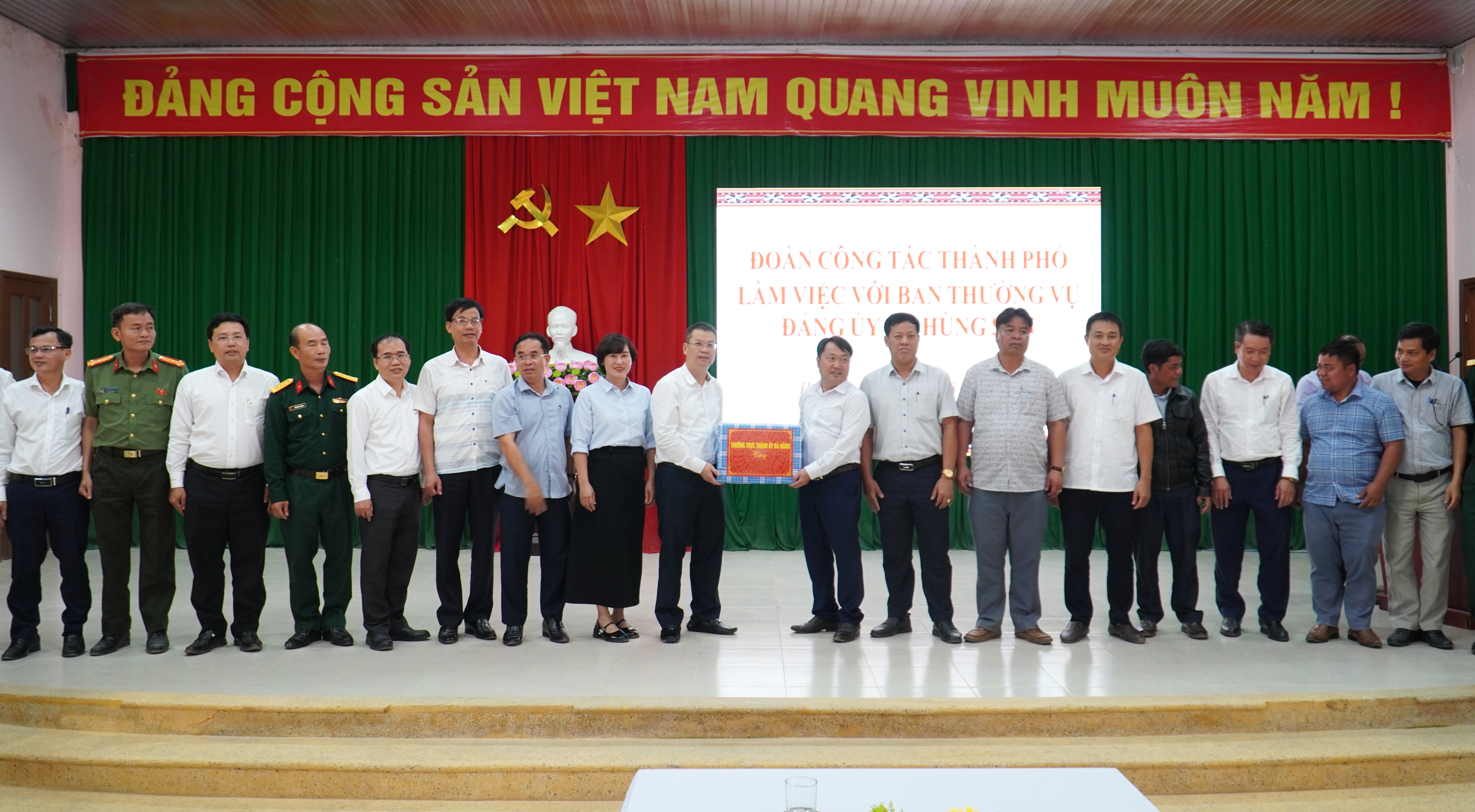 Lãnh đạo thành phố tặng quà xã Hùng Sơn.