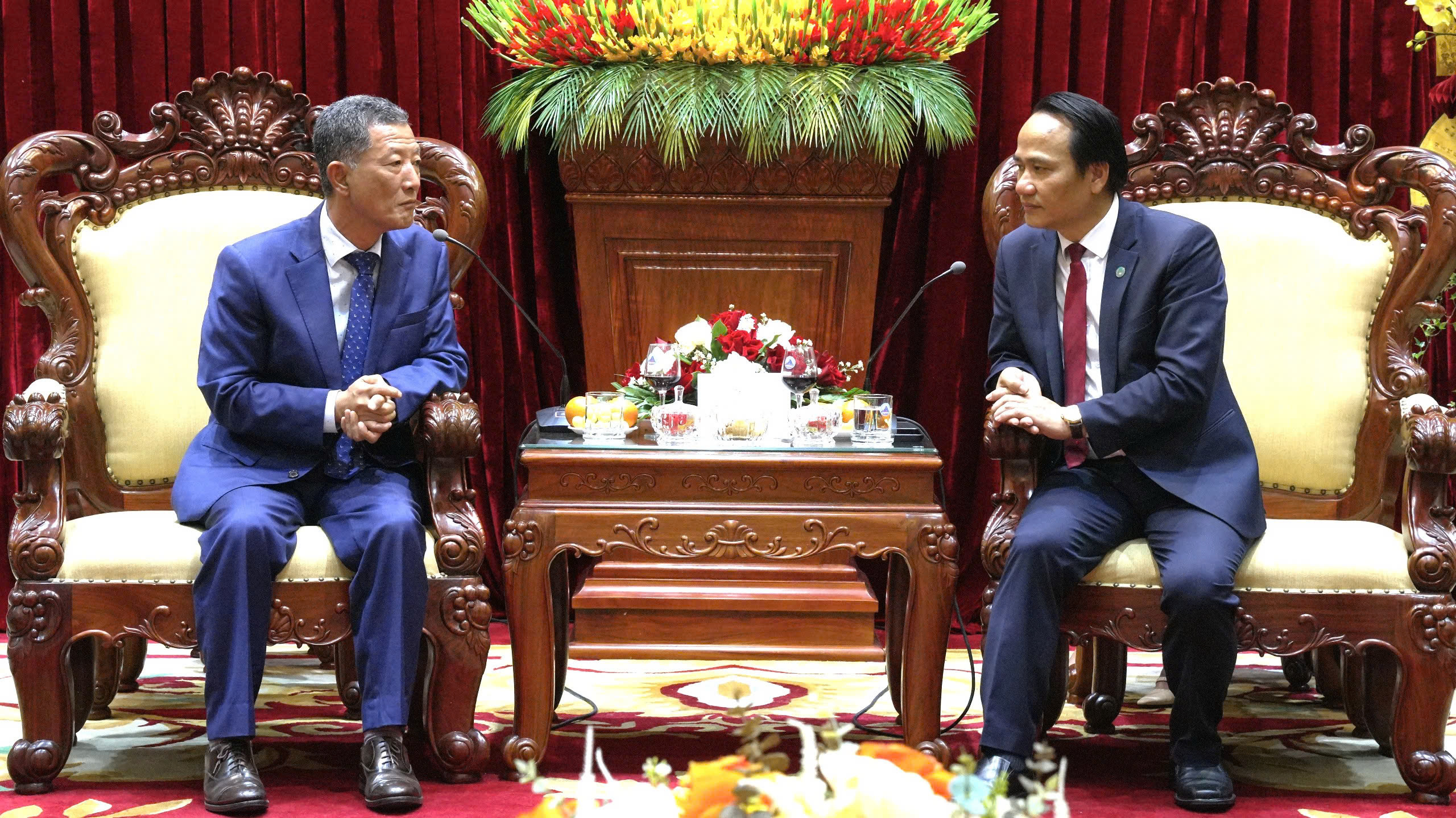 Phó Bí thư Thường trực Thành ủy Nguyễn Đình Vĩnh trân trọng cảm ơn các Tổng Lãnh sự đến thăm, chúc Tết thành phố; gửi lời chúc năm mới tốt đẹp đến lãnh đạo, cán bộ, nhân viên các cơ quan lãnh sự và cộng đồng doanh nghiệp hai nước đang hoạt động tại Đà Nẵng.