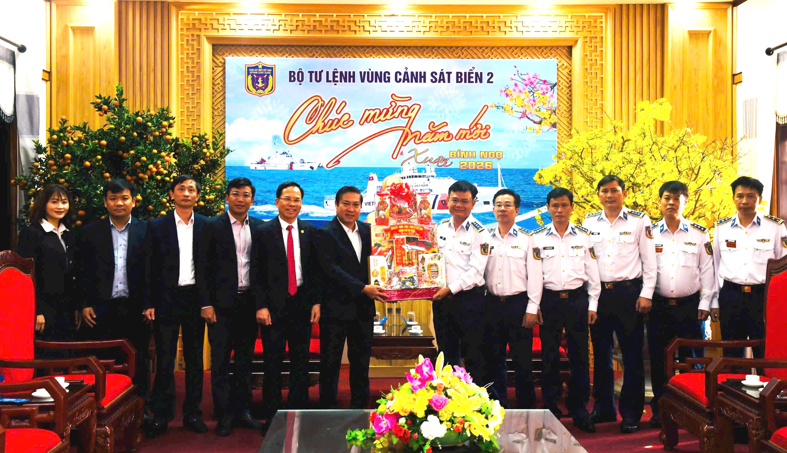 Nhân dịp Tết Nguyên đán Bính Ngọ 2026, sáng 10-2, đoàn công tác do Phó Chủ tịch UBND thành phố Phan Thái Bình làm trưởng đoàn đến thăm, chúc Tết cán bộ, chiến sĩ Bộ Tư lệnh Vùng Cảnh sát biển 2 (đóng tại xã Núi Thành).