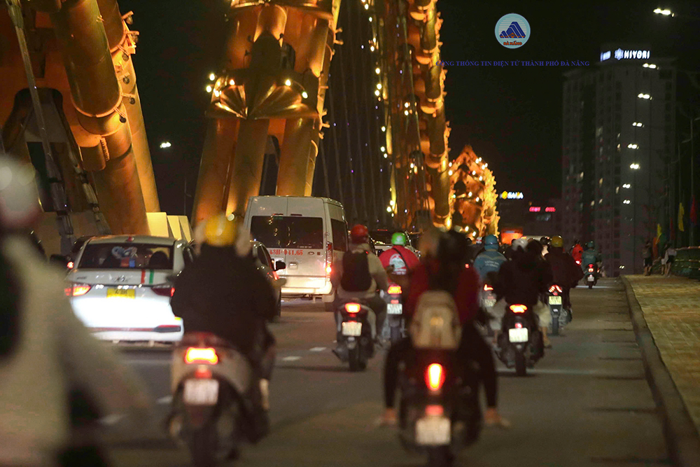 Cầu Rồng và các tuyến đường dẫn về trung tâm thành phố đông đúc, nhộn nhịp