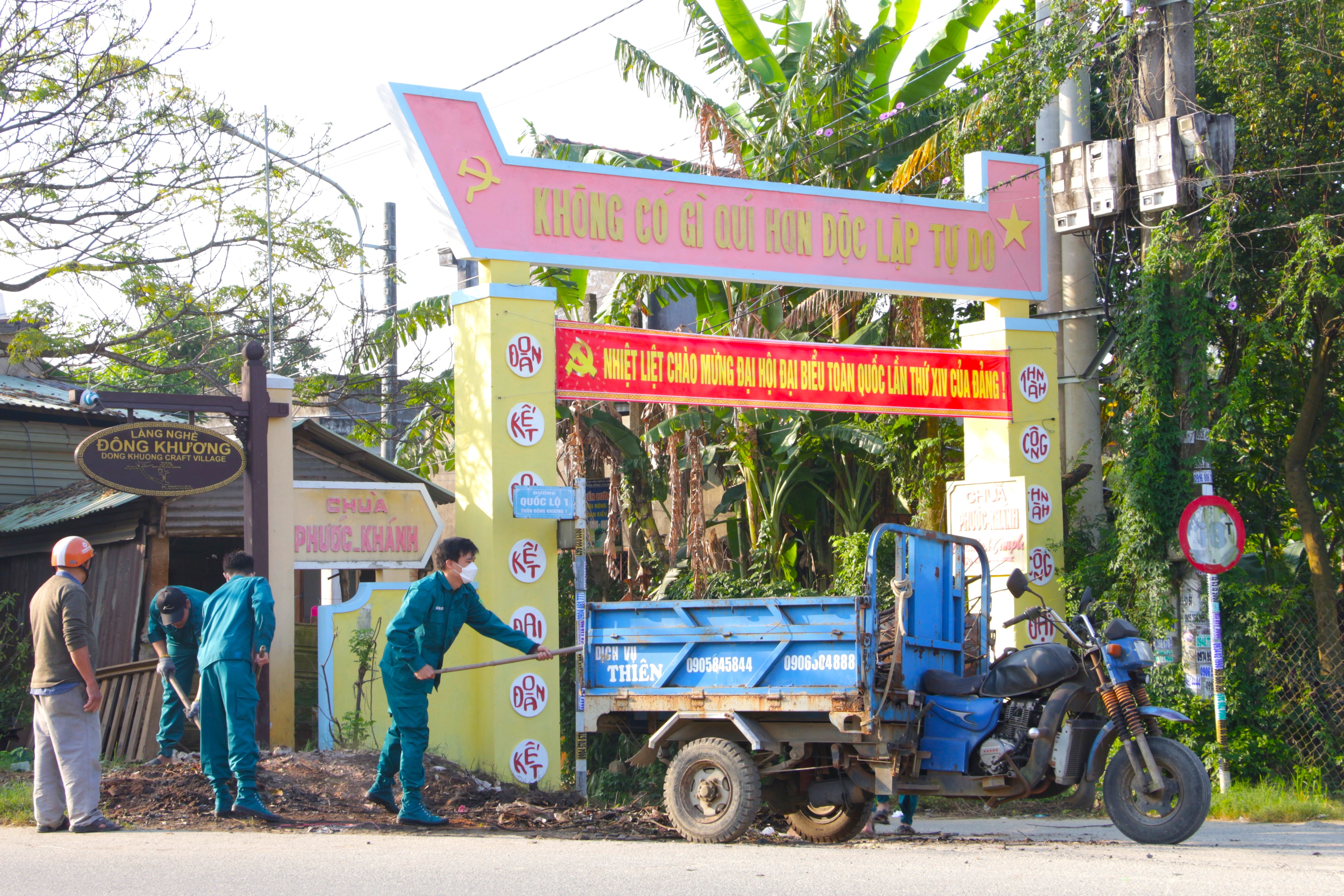 Phường Điện Bàn ra quân dọn vệ sinh, trang trí đô thị chào mừng Đại hội Đảng toàn quốc lần thứ XIV.