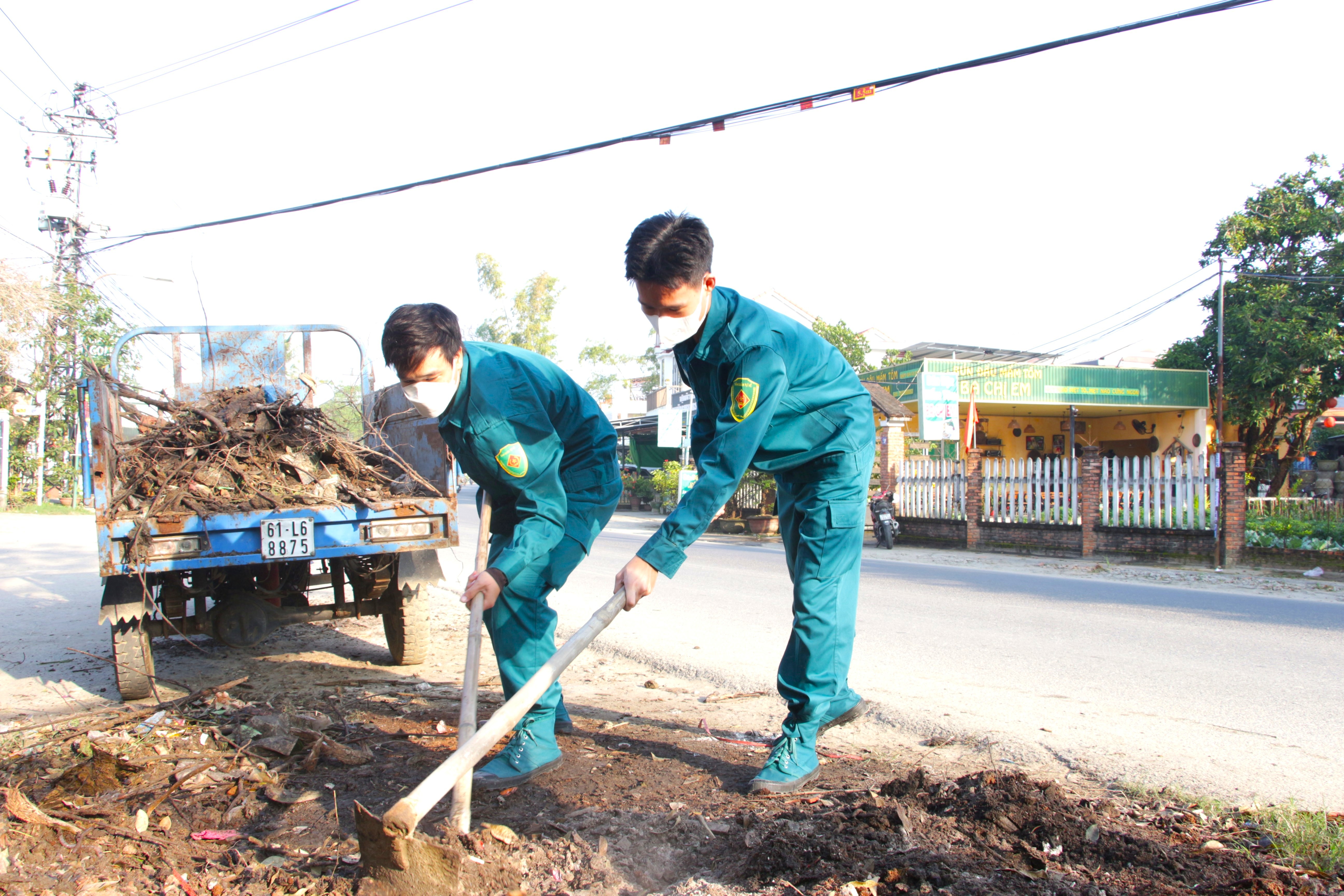 Lực lượng dân quân tham gia thu gom rác thải, tạo cảnh quan đô thị khang trang, sạch đẹp.
