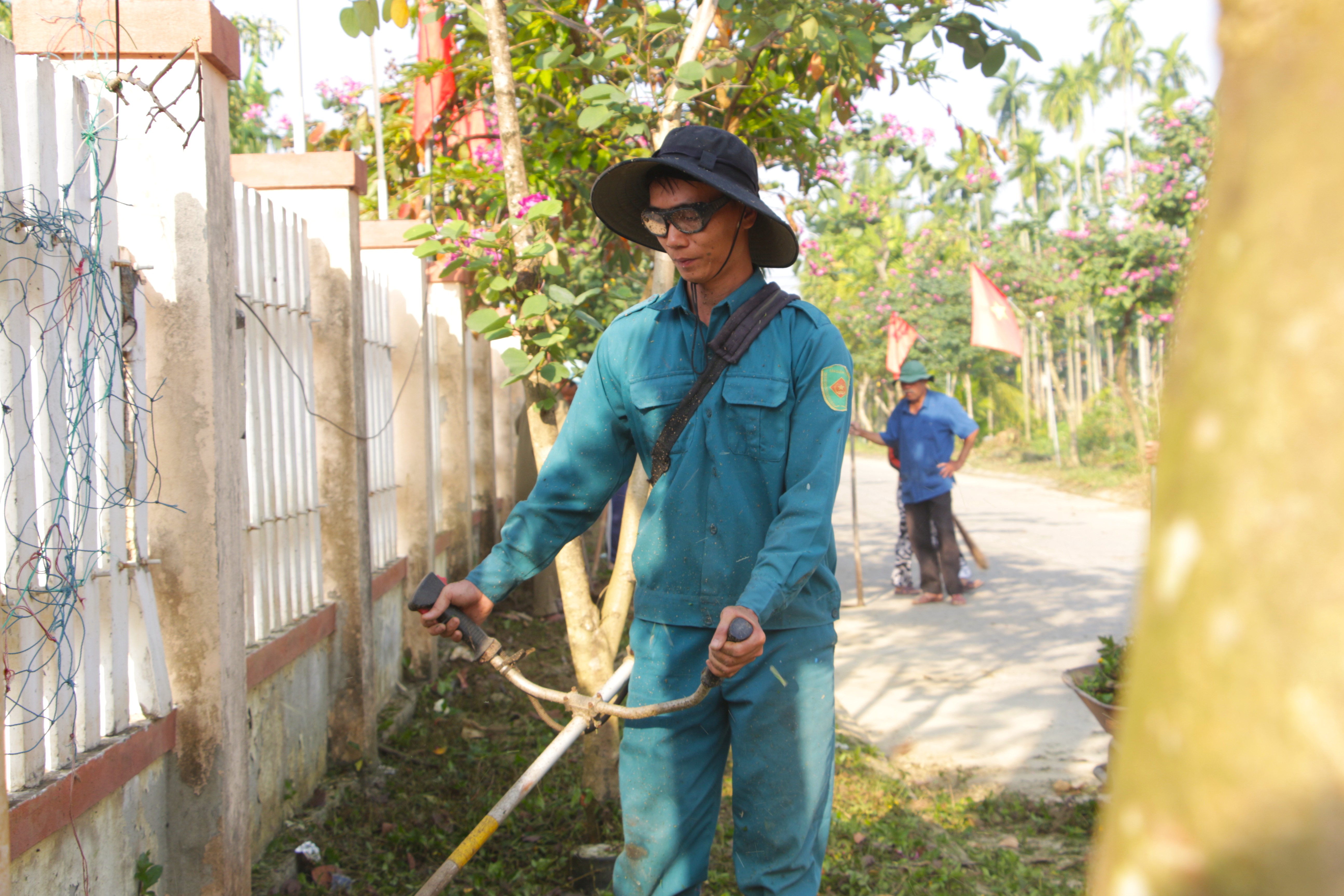 Ông Nguyễn Văn Việt tham gia cắt cỏ, làm đẹp tuyến đường.