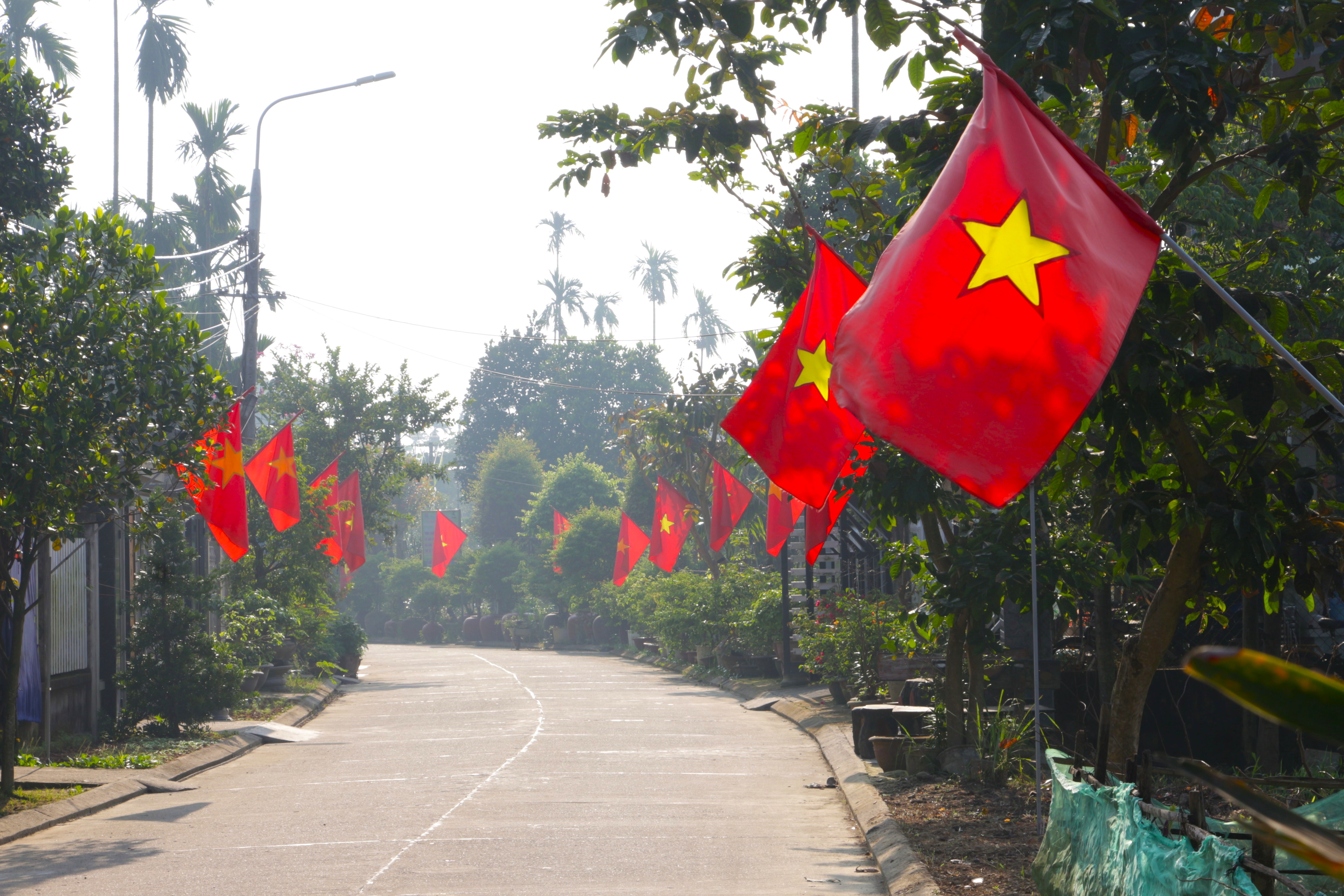 Băng rôn, cờ Tổ quốc được trang trí khắp các trục đường chính.