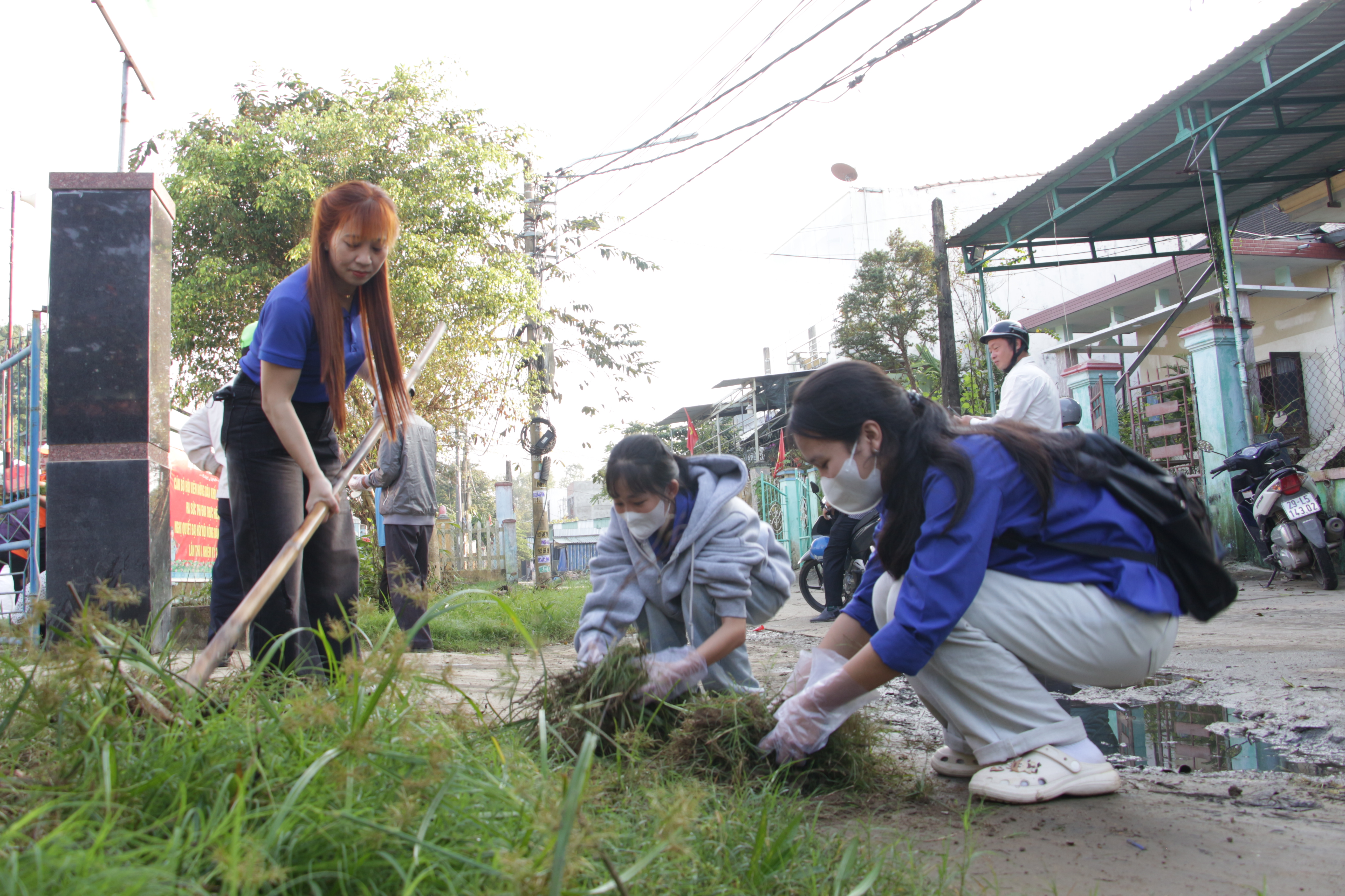 Đoàn viên thanh niên tham gia thu gom rác thải, làm sạch các tuyến đường.