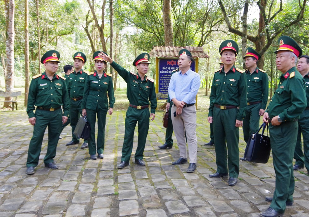Tại các điểm khảo sát, lãnh đạo địa phương và cơ quan chức năng báo cáo tình hình quản lý, bảo tồn, phát huy giá trị di tích. Đồng thời, Đoàn trực tiếp kiểm tra thực địa, nắm bắt những thuận lợi, khó khăn, vướng mắc trong quá trình tổ chức gìn giữ, khai thác các “địa chỉ đỏ” mang đậm dấu ấn lịch sử của Quân khu.