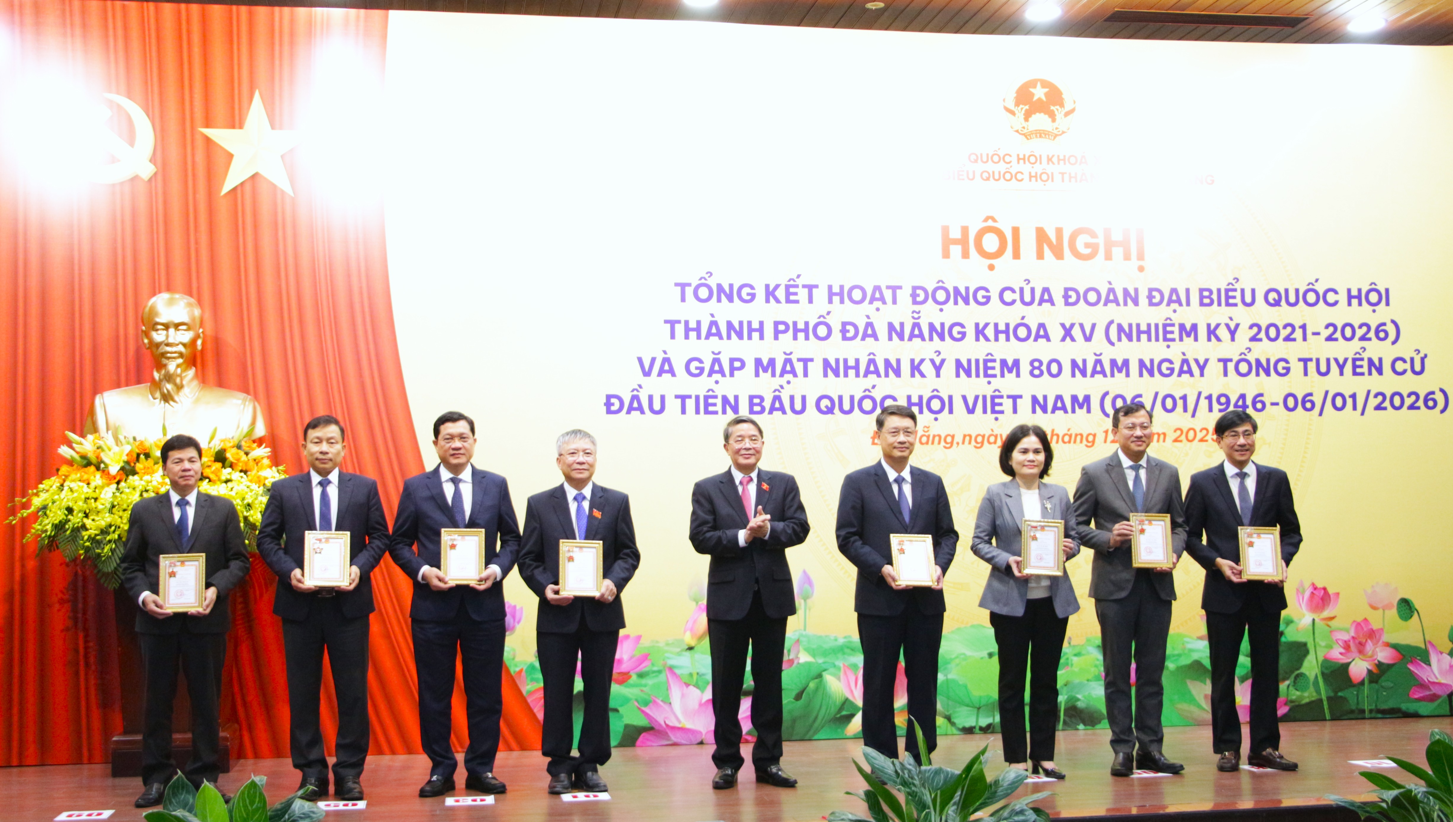 Chiều 19-12, Đoàn đại biểu Quốc hội (ĐBQH) thành phố Đà Nẵng tổ chức Hội nghị tổng kết hoạt động của ĐBQH thành phố Đà Nẵng khóa XV (nhiệm kỳ 2021 - 2026) và gặp mặt nhân kỷ niệm 80 năm Ngày Tổng tuyển cử đầu tiên bầu Quốc hội Việt Nam (6/1/1946 - 6/1/2026).