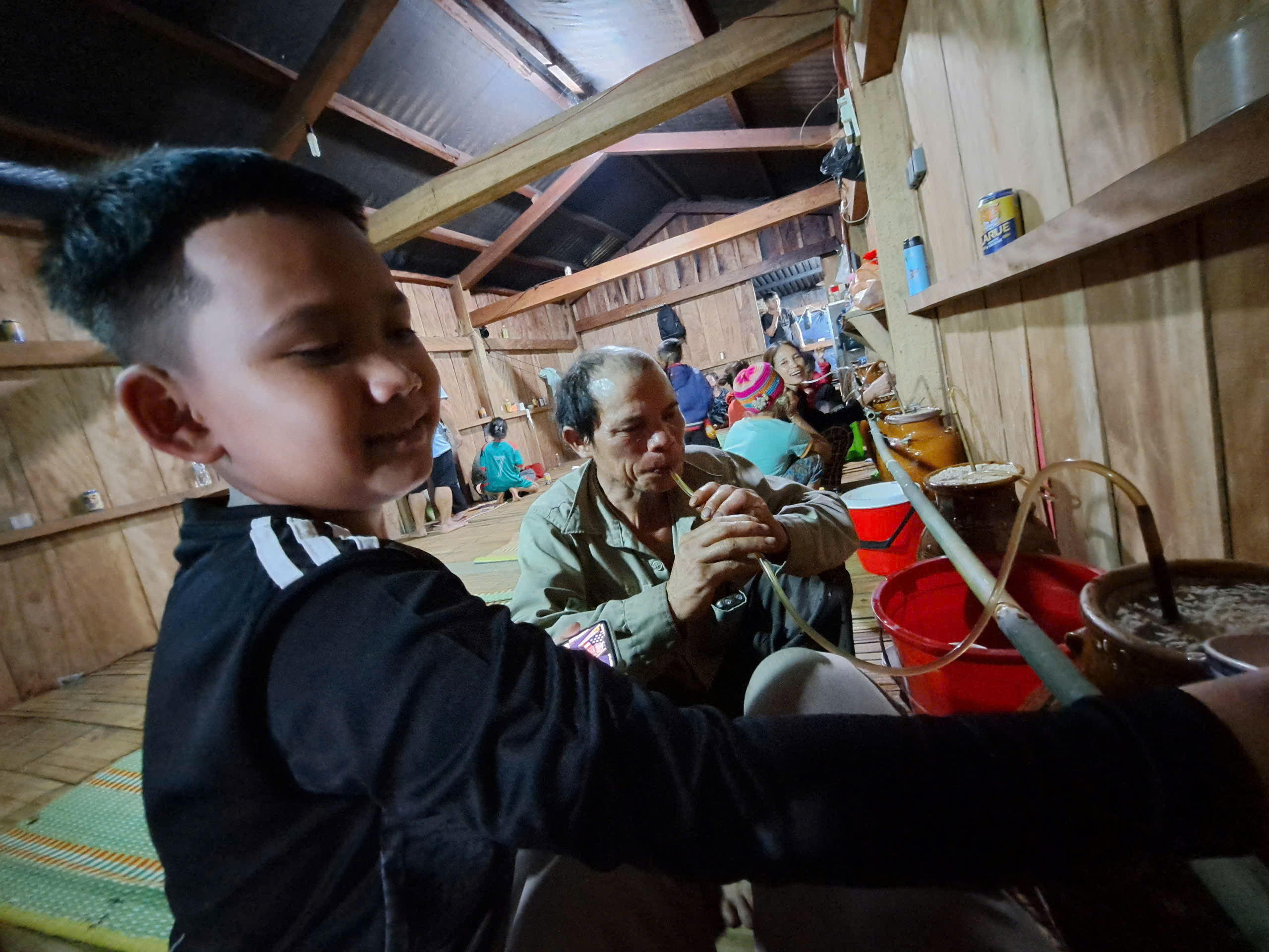 Khi phần lễ khép lại, không khí hội hè bắt đầu rộn ràng. Gia đình mở tiệc chung vui cùng bà con trong làng, nấu rượu cần, cơm lam và chế biến các món đặc sản núi rừng như chuột, sóc, ếch chò… để đãi khách, sẻ chia niềm hân hoan của những ngày đầu năm.