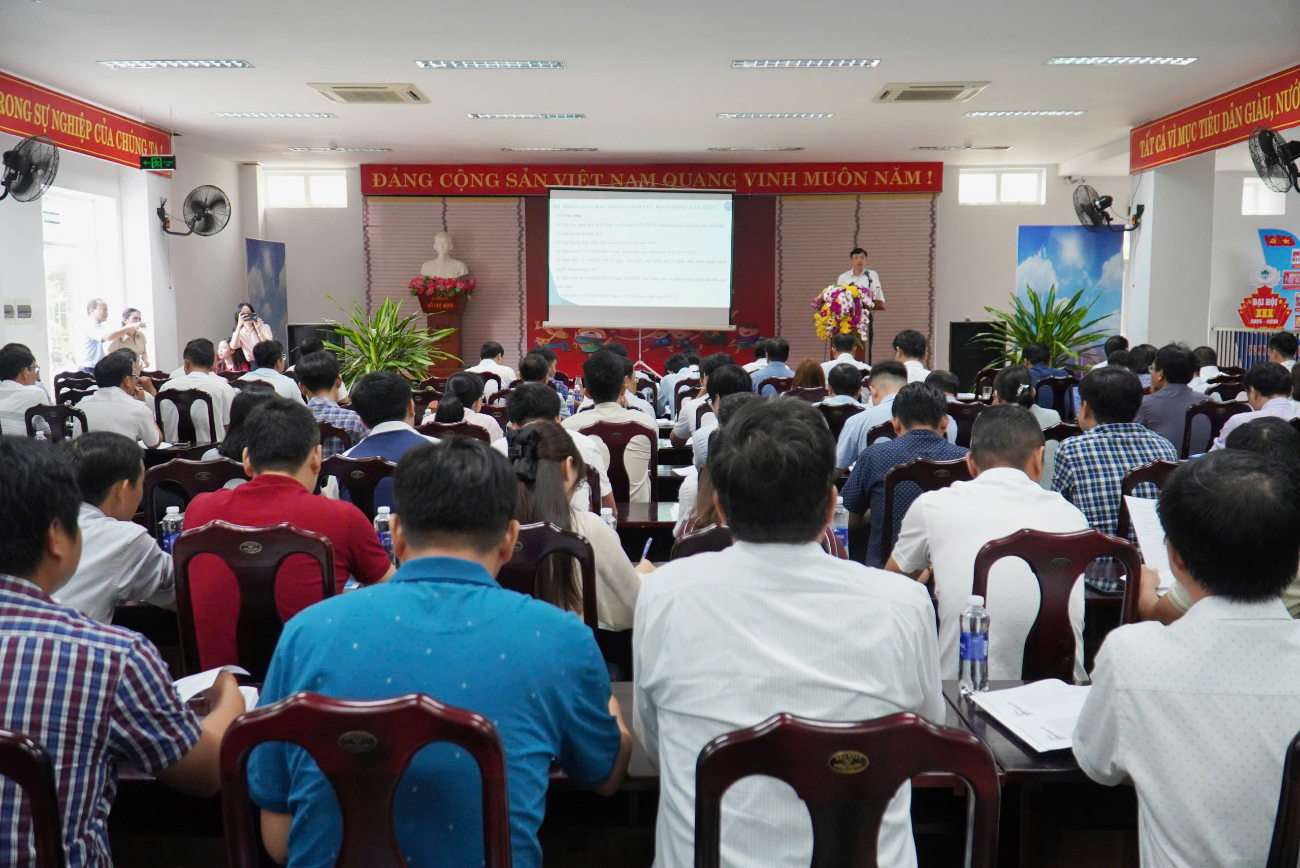 Tại hội nghị, lãnh đạo Sở Xây dựng và các phòng chuyên môn phổ biến, tập huấn triển khai các nội dung hướng dẫn chuyên môn, nghiệp vụ trong lĩnh vực xây dựng; lắng nghe, trao đổi, thảo luận về những khó khăn, vướng mắc tại cơ sở, góp phần tháo gỡ những vấn đề thực tiễn của chính quyền địa phương hai cấp.