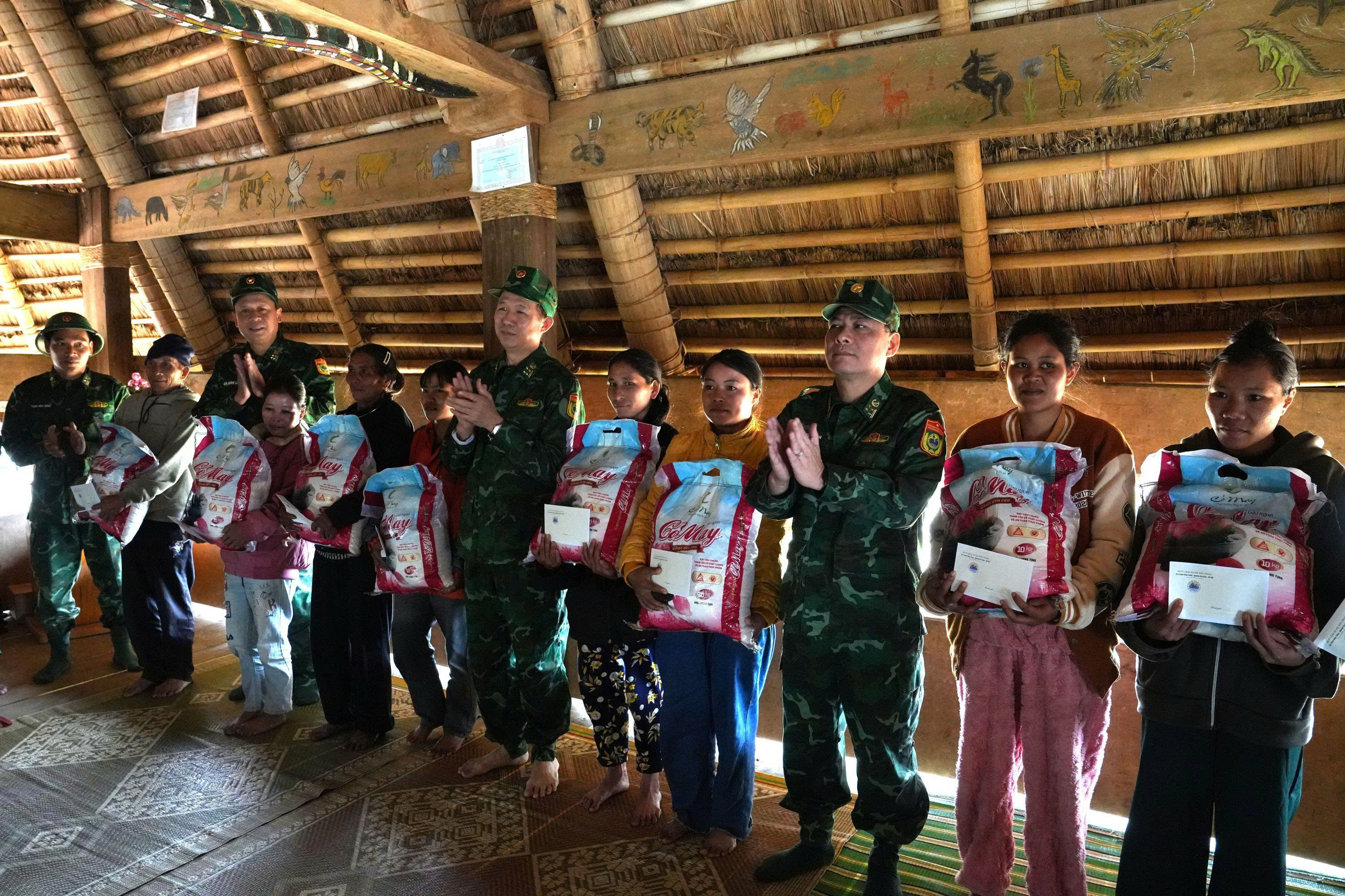 Đoàn công tác Bộ Tư lệnh BĐBP trao tặng trao 30 suất quà (mỗi suất trị giá 2 triệu đồng) cho 30 hộ dân thôn Pứt.