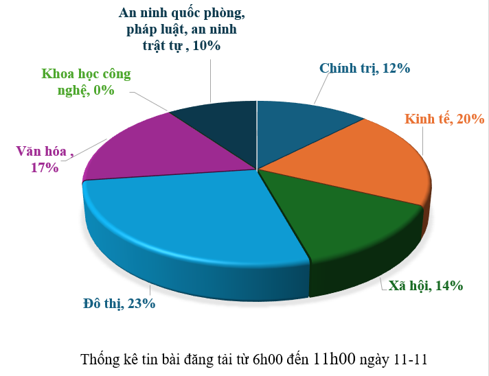 Từ 6h00 đến 11h00 ngày 11-11, có khoảng 81 tin, bài báo viết về thành phố Đà Nẵng.