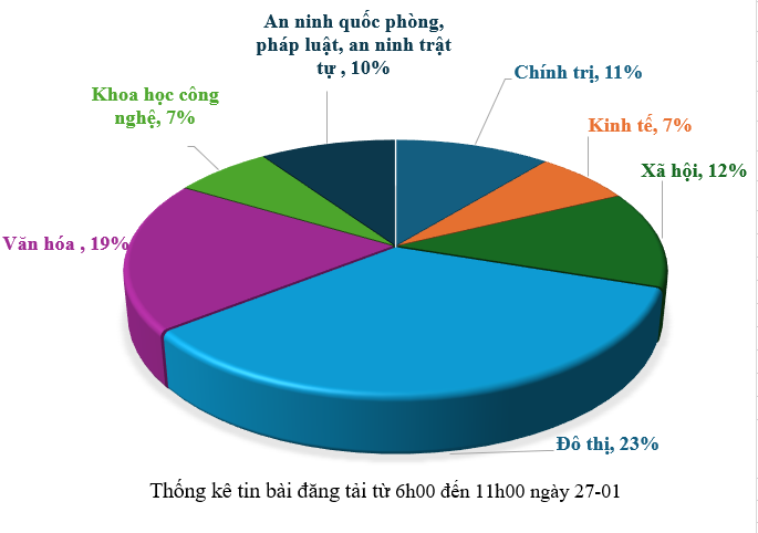 Từ 6h00 đến 11h00 ngày 27-01, có khoảng 73 tin, bài viết về thành phố Đà Nẵng.