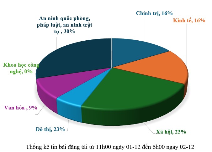 Từ 11h00 ngày 01-12 đến 6h00 ngày 02-12, có khoảng 167 tin, bài báo viết về thành phố Đà Nẵng.