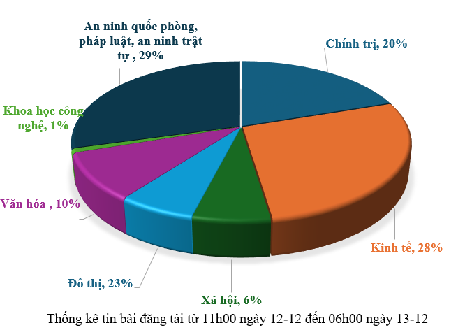 Từ 11h00 ngày 12-12 đến 6h00 ngày 13-12, có khoảng 126 tin, bài báo viết về thành phố Đà Nẵng.