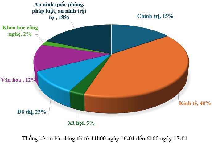 Từ 11h00 ngày 16-01 đến 6h00 ngày 17-01, có khoảng 151 tin, bài báo viết về thành phố Đà Nẵng.