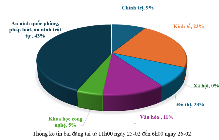 Từ 11h00 ngày 25-02 đến 6h00 ngày 26-02, có khoảng 149 tin, bài viết về thành phố Đà Nẵng.