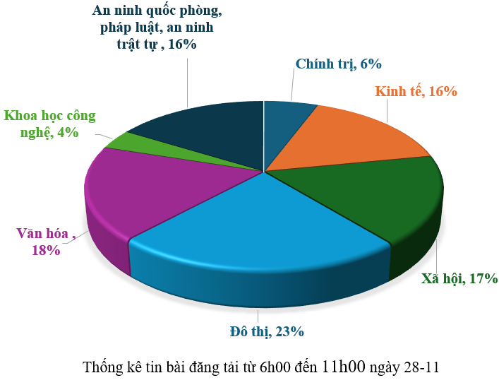 Từ 11h00 ngày 27-11 đến 6h00 ngày 28-11, có khoảng 166 tin, bài báo viết về thành phố Đà Nẵng.